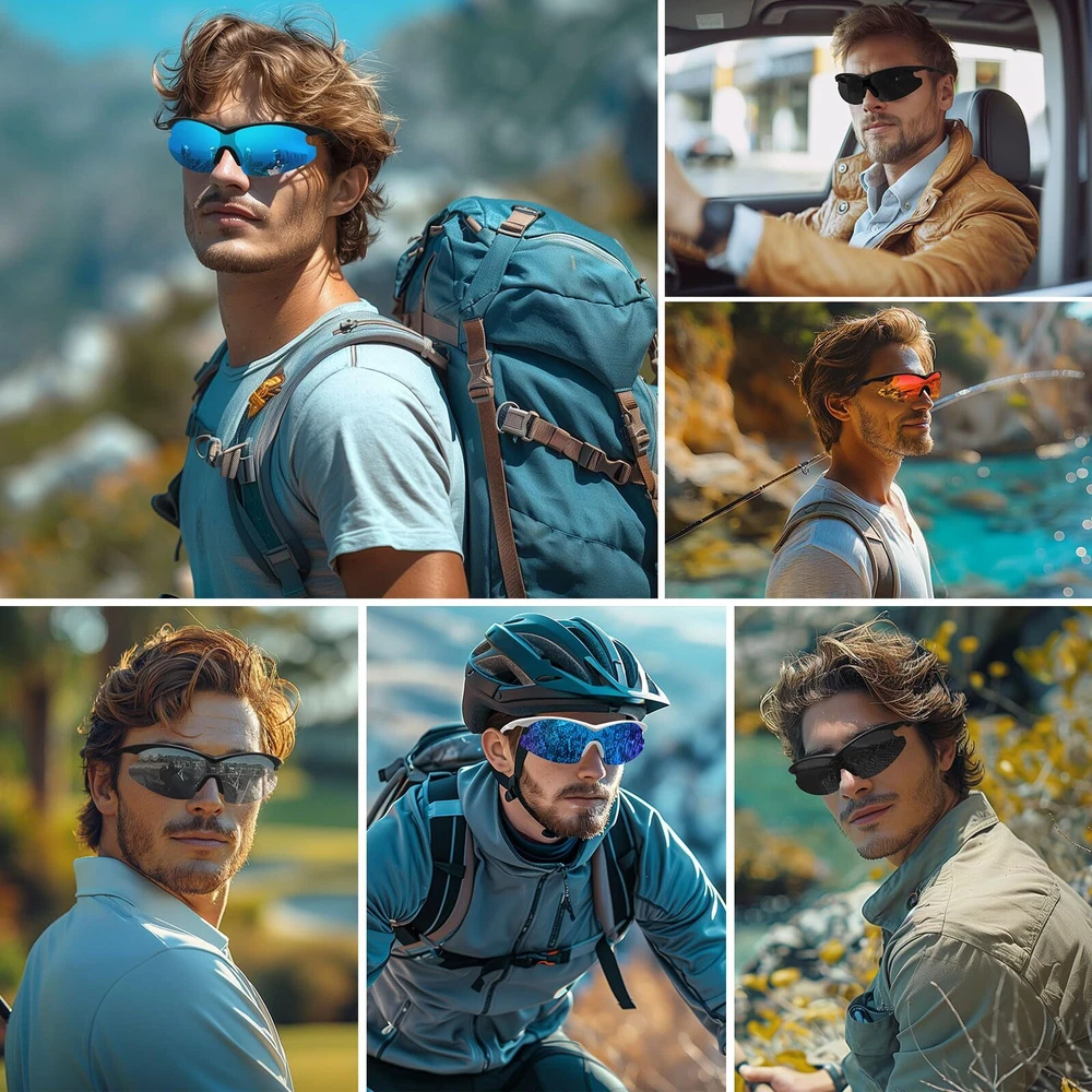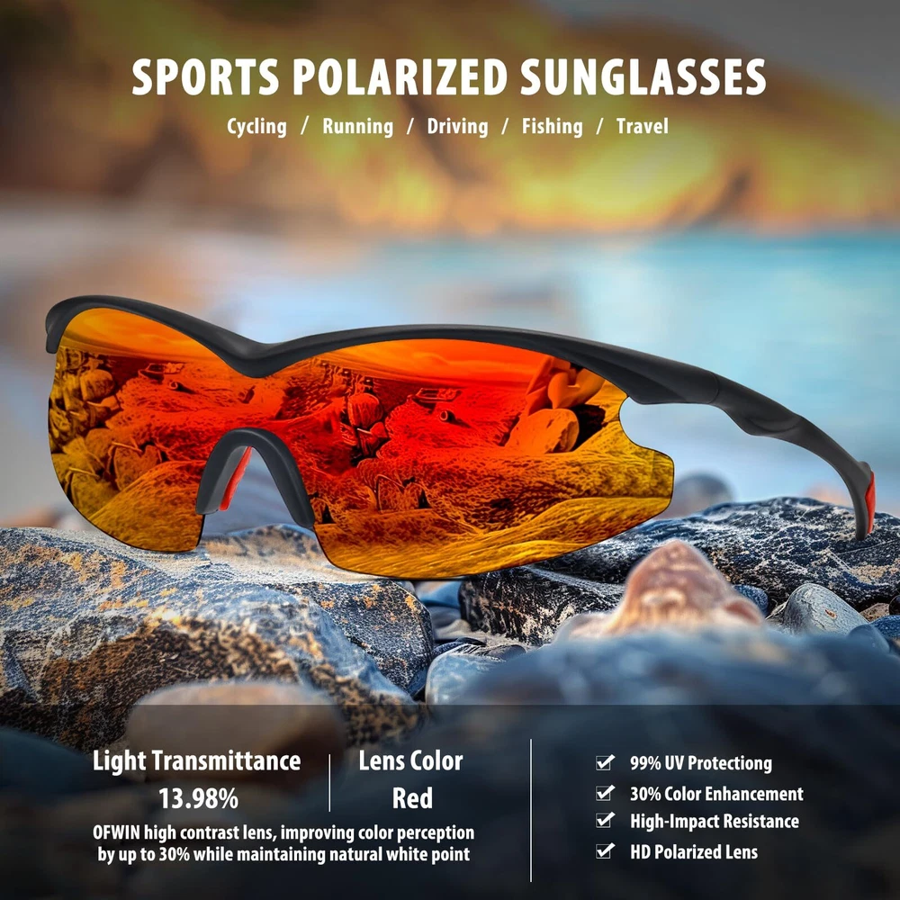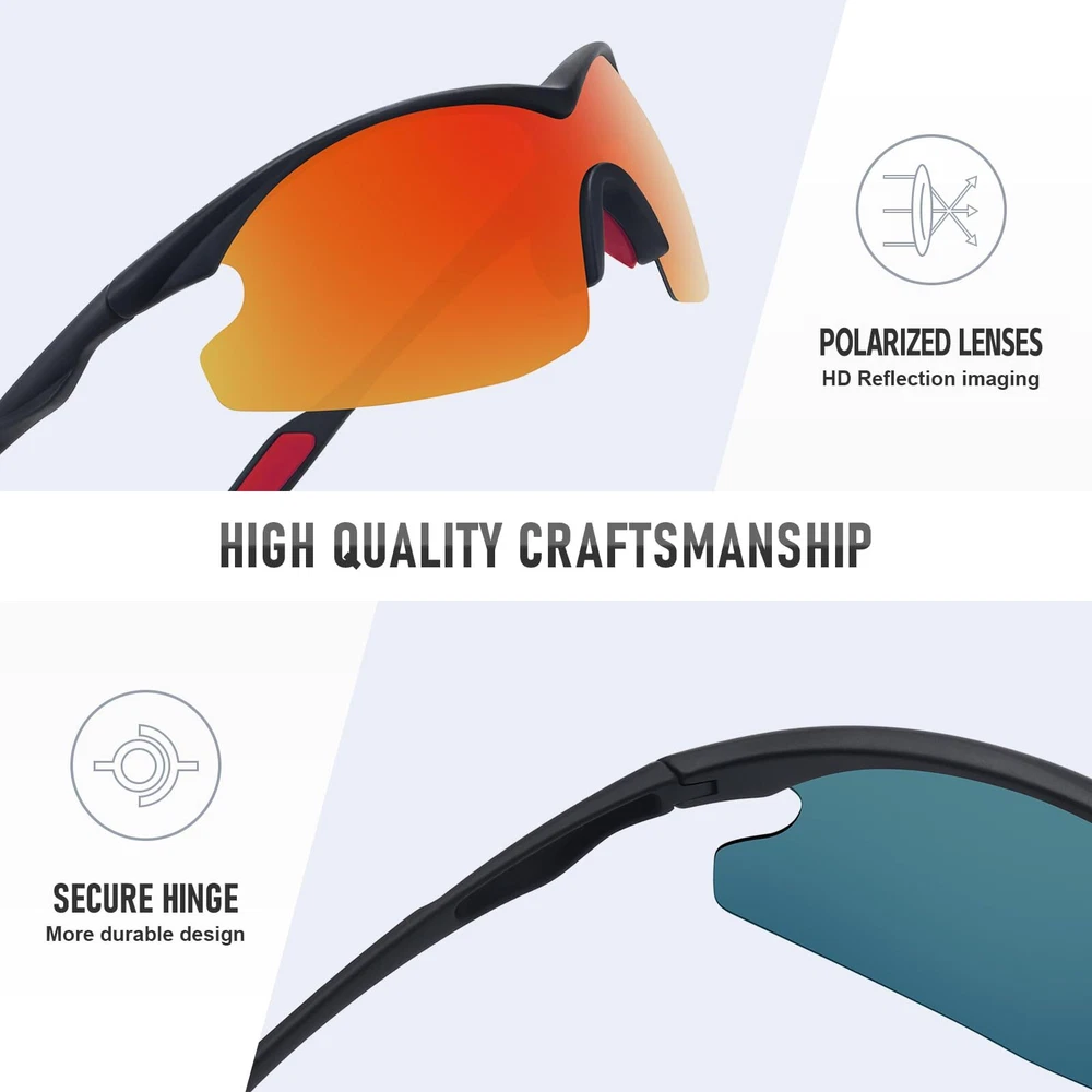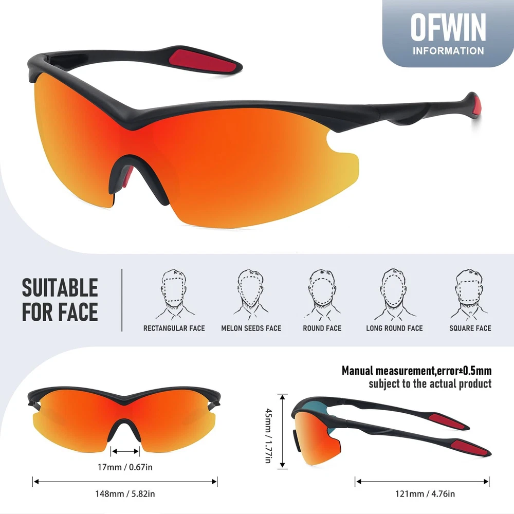Polarized Lenses: Reducing glare and eye strain with polarized lenses for optimal visual clarity. UV400 Protection: Shielding your eyes from harmful UV rays with 99.99% UV protection. Stable Construction: Constructed from lightweight yet sturdy materials for long-lasting use, comfortable to wear. Stylish Design: Trendy sports sunglasses that offer a fashionable look to complement any outfit. Dimensions: Lens Width:73mm/2.87in, Lens Height: 45mm/1.77in, Frame Width: 148mm/5.82in, Bridge Width:17mm/0.67in, Arm Length: 121mm/4.76in.