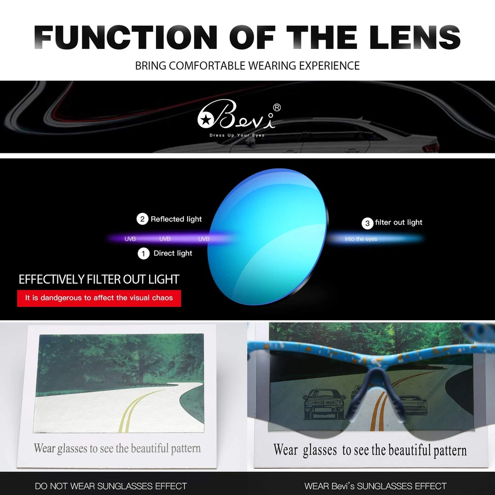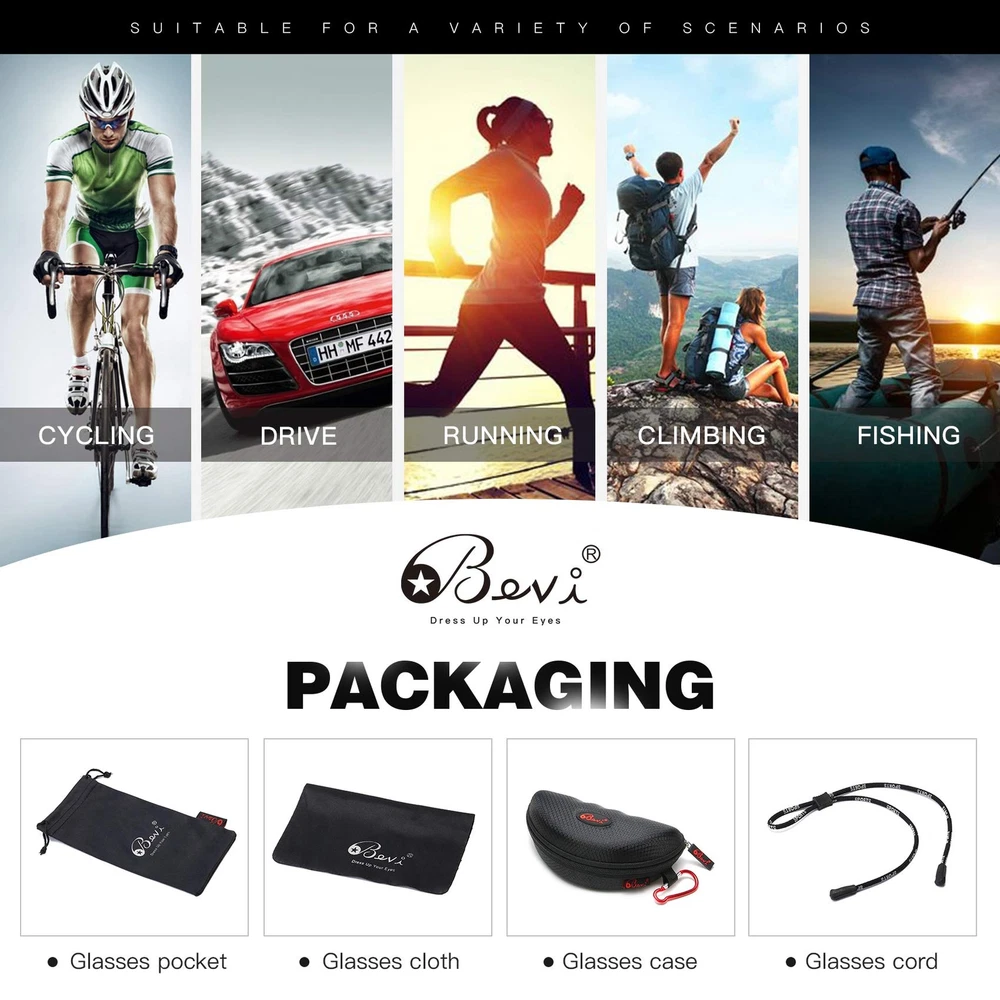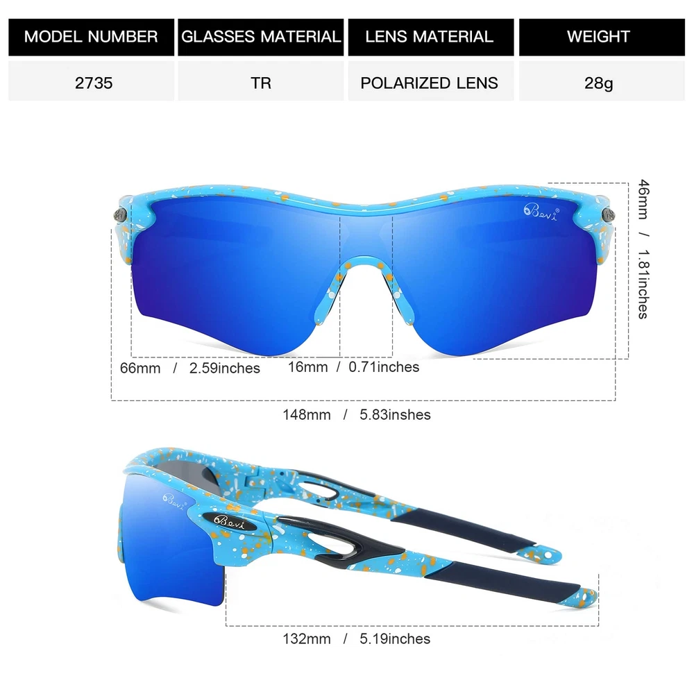 Product Dimension– Lens Width: 2.6 inch, Lens height: 1.81 inch, Temple Length: 5.19 inch, Nose Bridge: 0.71 inch ( Please be sure that size is fit your face ) New material -TR90 was produced through Swiss technology as a thermoplastic material that is incredibly durable, flexible, and lightweight. Glasses made with TR90 are extremely comfortable because they have a flexible quality. Since they are flexible, they can bend under pressure and contour your face comfortably. OUTSTANDING LENSES – polarized lenses are comparable to the thickness you would find on much higher priced sports eyewear. TAC (Triacetate) lenses pass a double decentering test to ensure there is no optical distortion which can cause eye strain and headaches. Polarized sunglasses help reduce glare caused by reflected light to improve vision and comfort. SOFT NOSEPAD – Let your nose feel comfortable while wearing Sports Sunglasses for cycling, running, fishing, golf. Please do not Place the sunglasses next to the flame to avoid melting. Please do not Prolonged exposure in the salt water or cleaning water with chemical. Please do not wipe the lenses with finger directly. A cleaning cloth is the best choice for cleaning lenses.