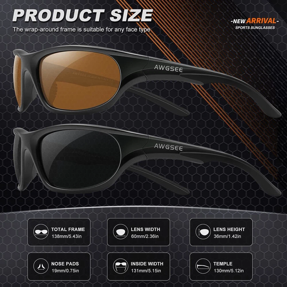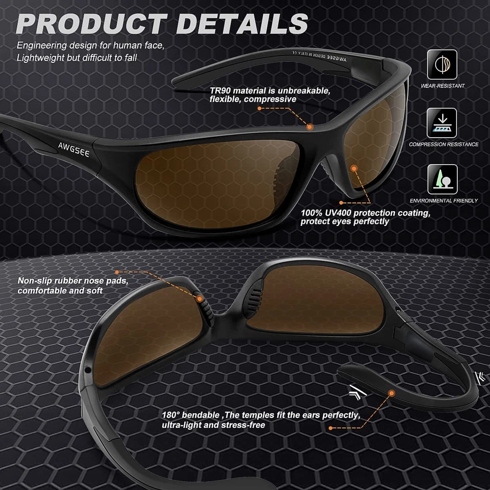 100% UV PROTECTION & POLARIZED SUNGLASSES - Soak up the sun and enjoy life. When you are engaged in outdoor activities, strong ultraviolet rays can harm our eyes. Do you ignore the health of your eyes? mens sunglasses polarized uv protection can protect your eyes from harmful ultraviolet rays, reduce glare and provide additional clarity, and can ease eye strain from long hours in the sun. ULTRA LIGHT AND DURABLE TR90 FRAME - sport sunglasses for men are made of TR90 material, allows for an incredibly durable, flexible, and lightweight, they can bend under pressure and contour your face comfortably, and it’s a lightweight material, they will feel like Oneself aren’t even wearing uv sunglasses for men. SOFT ANTI-SLIP RUBBER NOSE PAD - In life, fishing sunglasses will always slowly slip off the bridge of the nose, which will affect the wearing comfort. Our driving sunglasses for men use rubber nose pads, can keep friction in wet and oily conditions and grip to the skin including the bridge of your nose, let your nose feel comfortable and relaxed. USE OCCASIONS - These mens sunglasses sport help reduce glare and provide extra clarity while keeping your eyes protected. Is ideal for usage by motorcycle and cycling, driving, running, fishing, climbing, trekking or other outdoor activity enthusiasts. GIFT PACKAGED - Includes sunglasses, soft box, bag, lens cloth, testing card. Great gift idea for friends and family!