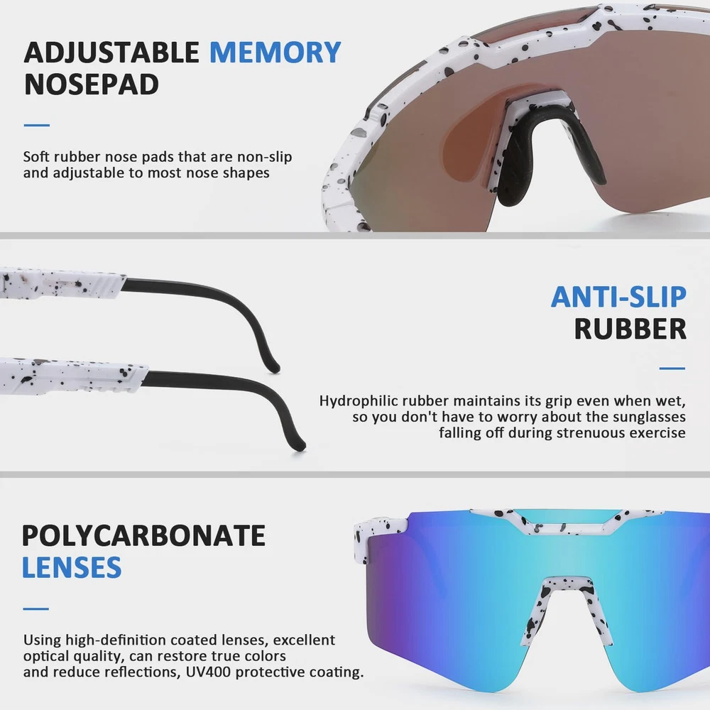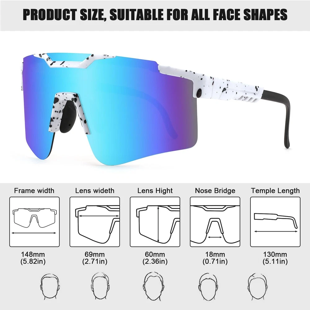 Description AFTER-SALES GUARANTEE - We are committed to product quality, never stop, providing 100% quality commitment. If you have any questions about our products or services, please send us an email and we will be happy to assist you. If you are not satisfied with the product, we will refund or replace it. You won't be at risk of trying. PLEASING AND DURABLE - sports sunglasses feature cool frame design with a wide field of vision. It is visually appealing and has unisex design, with rich color choices of frames and lenses. Polycarbonate lenses and frames are impact-resistant and long-lasting. PREMIUM LENSES - Using high-definition coated lenses, excellent optical quality, can restore true colors and reduce reflections. UV400 protective coating, blocking 99.99% of harmful UVA and UVB rays, can eliminate glare, reduce eye fatigue, and make the scenery clearer and softer, Protect your eyes from sand, wind and sun damage. STYLISH APPEARANCE - These cycling sunglasses skillfully blend fashion and practicality, designed for young people. Its modern look not only enhances your personal style, but also shows your vigor and fashionable taste while protecting your eyesight. PERFECT ADAPTATION - No matter which outdoor activity you are passionate about, these glasses provide reliable protection for your eyes in different scenarios, allowing you to focus on enjoying your sport. Is the ideal sports accessory! WIDE APPLICATION - This wind proof glasses are ideal for biking ,cycling, driving, running, fishing, racing, golf, skating, climbing, trekking,baseball,volleyball and other outdoor activities. And this sunglasses is not only suitable for adult, but also for kids.