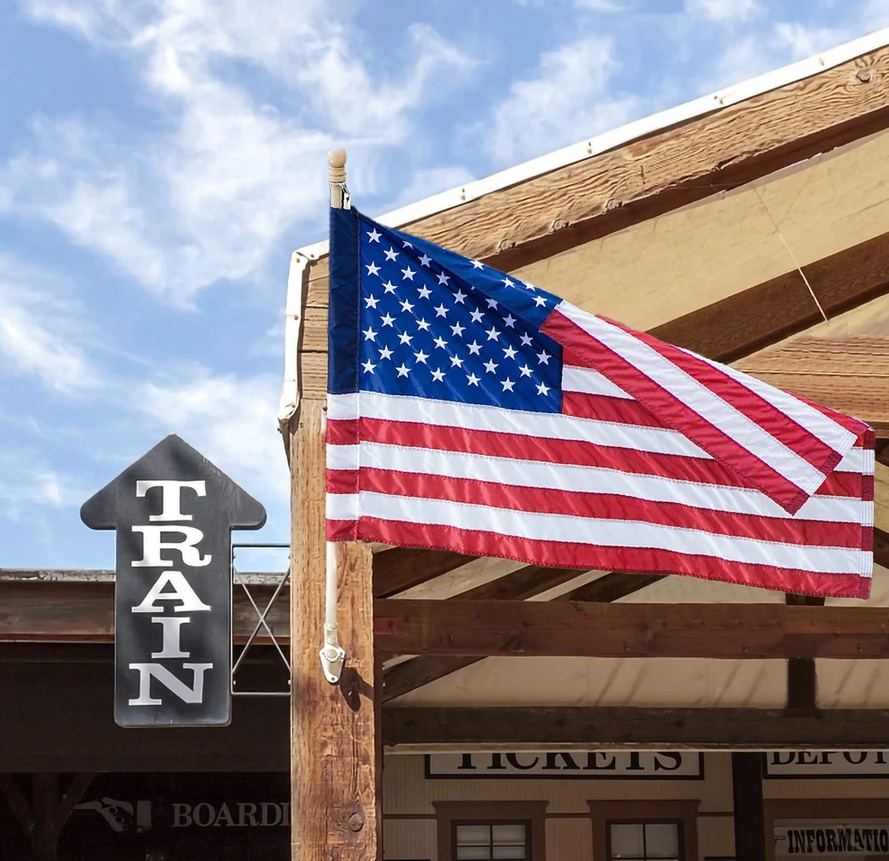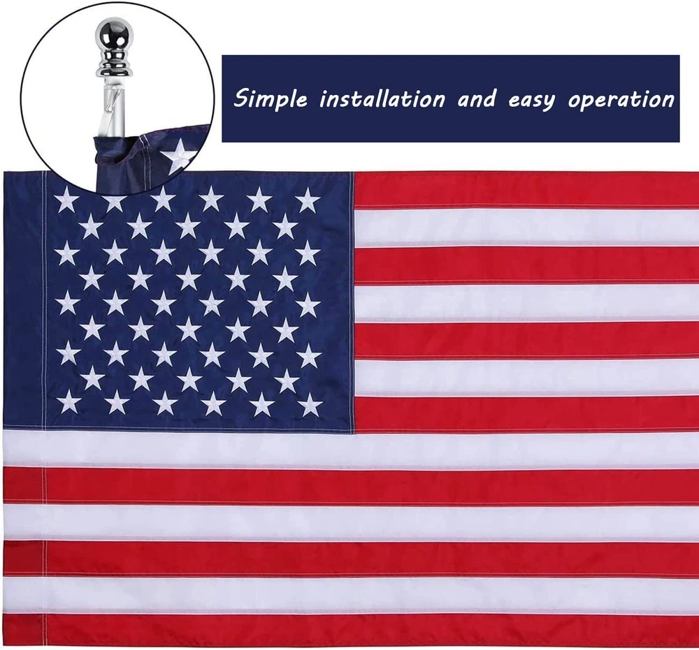 Pole Sleeve American Flag 3x5 FT Outdoor - American Flag Heavy Duty 3x5 FT 100% Made in USA All Weather Sewn Stripes Embroidered Stars (Pole Sleeve 3 by 5 Foot) 1.LONGEST LASTING FLAG- Our 3x5 Pole Sleeve USA flags are expertly made using heavyweight deluxe nylon, making sure that every flag can survive in bad weather. Your 3x5 Pole Sleeve American Flag outdoor will always remain in good condition, as it is supported by 2 tough brass grommets and has a quadruple stitched hem. 2.QUALITY Craftsmanship-Heavy duty canvas made header with truly brass made rust proof grommets can be strong enough to durable the flag. Four rows of stitching on header and fly hem avoid fraying and tearing 3.POLE SlEEVE AMERICAN FLAG-Light flyability with reinforced polyester header for tough extra strength, heavy-duty brass grommets and quadruple stitched fly hem 4.MADE IN USA FLAG- Sturdy Materia,3x5 Pole Sleeve american flag,100% polyester.Durable and high-strength wear resistance,works well in our unpredictable weather.It can be used as a gift for your friends,also you can use it as a decoration or hang the flag outside the house. 5.PERFECT SERVICE-We stand behind of our flag and try the best to control the details of each craft strictly and make sure the "No Questions Asked" is offered for you.