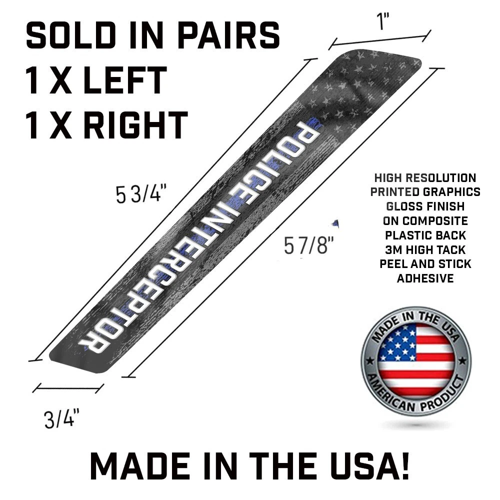 BLACK AND GREY POLICE INTERCEPTOR GHOST USA AMERICAN FLAG BLUE LINE SADDLEBAG LATCH COVER REFLECTOR INSERTS FITS 2014 AND NEWER HARLEY DAVIDSON TOURING MODELS LIKE ROAD GLIDE ROAD KING STREET GLIDE ULTRA GLIDE WITH STOCK SADDLEBAG LATCH COVERS AND OEM REFLECTORS REMOVED THIS IS A CUSTOM PRINTED PRODUCT AND IS NON-REFLECTIVE 2013 AND OLDER STYLE REFLECTOR INSERTS ALSO AVAILABLE IN OUR EBAY STORE SOLD IN PAIRS 1 X LEFT BAG AND 1 X RIGHT BAG INSERT IS MADE FROM HIGH QUALITY COMPOSITE PLASTIC MATERIAL INSERT COMES WITH HIGH BOND 3M PEEL AND STICK ADHESIVE ON BACK FEATURES HIGH GLOSS HIGH RESOLUTION PRINTED GRAPHICS UV & SCRATCH & WATER RESISTANT MATERIAL INSERTS ARE NON-REFLECTIVE CUSTOM DESIGNS AVAILABLE VIA SPECIAL ORDER AND PRE-APPROVAL OF ART DESIRED PROUDLY MADE TO ORDER IN THE USA! WE HAVE BEEN SELLING THESE PRODUCTS ON EBAY SINCE 2008! SADDLEBAG LATCH COVERS FOR EXAMPLE PRODUCT INSTALLED DISPLAY ONLY AND NOT INCLUDED IN PURCHASE TO SEE MORE OF OUR CUSTOM SADDLEBAG INSERTS CLICK HERE