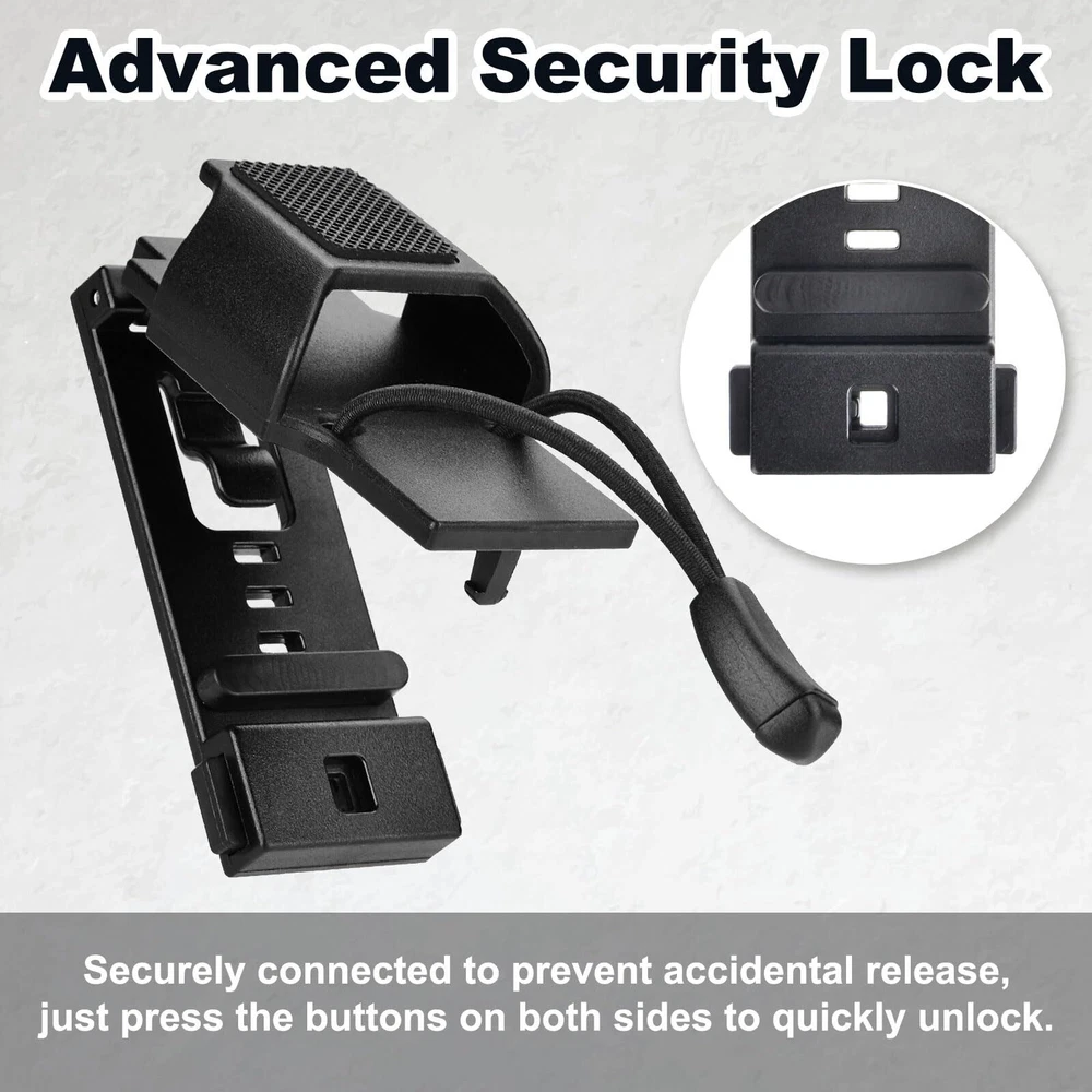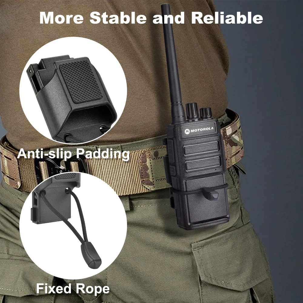 Fits Most Duty Belts: The radio holster for duty belts comes with an adjustable design, including a adjuster that ensures a perfect fit for belts up to 1.5''/1.75''/2''/2.25'' wide. This ensures a precise fit for most duty belts. Compatibility with Two-way Radios: Compatible with Motorola, Kenwood, BaoFeng, Hytera, Midland, Radioddity, and Ruyage two-way radios with hinged clip, making it a versatile radio holder for various radio brands. Secure Locking Mechanism: Features a switch lock function to prevent accidental releases, coupled with anti-slip padding and a fixed rope design. Whether you're running during duty, or facing impacts, this design ensures that your radio stays securely attached, preventing any unexpected opening. Quick Access Solution: The raised design of the walkie talkie holder allows for easy one-handed insertion and removal of the radio, making it an excellent choice for police, law enforcement officers, security officers, EMS, and tactical officers. Tired of the radio antenna poking your body while moving? The APX 6000 radio holder completely eliminates this issue. The Motorola radio holder is the result of extensive research and design by our professional team, catering specifically to tactical officers, ensuring both safety and comfort during walkie-talkie use.