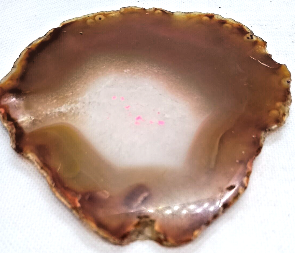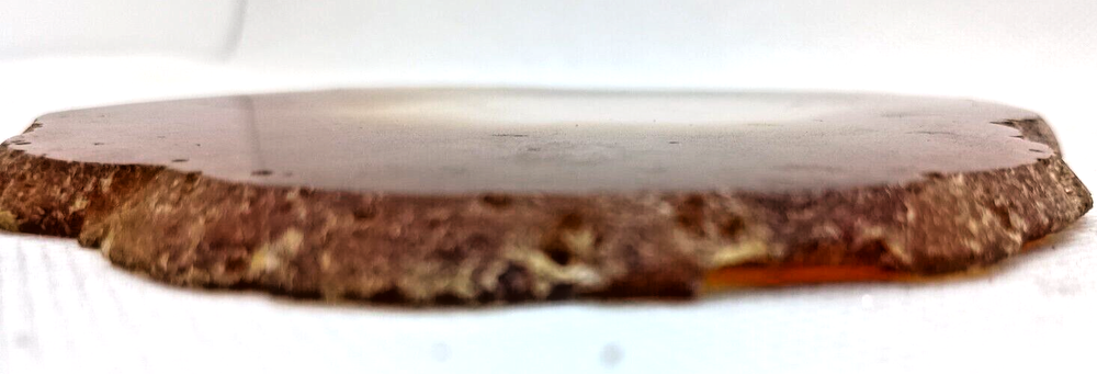 This product is a natural Agate crystal geode slice that weighs 4.2 ounces. The crystal has been polished to give it a smooth finish. It is a type of mineral crystal and is classified under the Agate sub-type. The shape of the crystal is natural, and it has a custom SKU of 4050. The country of origin is unknown.