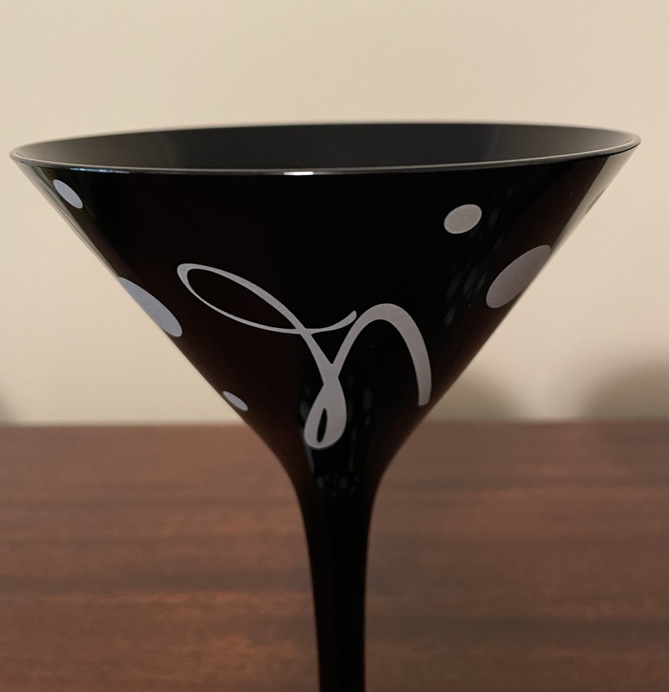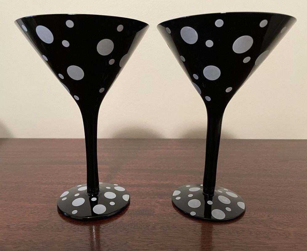 Type:Martini GlassPattern:Polka DotMaterial:GlassPersonalize:NoDepartment:AdultsService For:2Number of Items in Set:Two-PieceOccasion:All OccasionsGlassware Type:Martini GlassSeller Notes:“Gently used but good as new”Color:BlackSet Includes:Martini GlassBrand:Unbranded