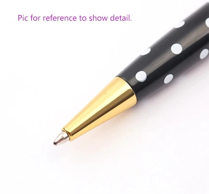 DETAILS This listing is for a beautiful pastel green with white polka dots & gold pen. The pen has black ink that is replaceable and writes very smoothly!! It measures approx. 5 1/2 inches long. I also add a free pouch with purchase. This is a high in quality and gorgeous pen!! Please feel free to ask any questions that you may have! FEEDBACK POLICY DUE TO A LARGE NUMBER OF BUYERS THAT NEVER RETURN FEEDBACK...I WILL ONLY GIVE IT AFTER THE BUYER DOES. WHEN THE BUYER RECEIVES THEIR ITEM AND LEAVES ME POSITIVE FEEDBACK, I PROMISE TO RETURN THE FEEDBACK TO THEM. SOMETIMES IT TAKES ME A FEW DAYS BUT I WILL GET IT TO YOU!! IF THE BUYER IS NOT HAPPY WITH SOMETHING I ASK THEM TO PLEASE CONTACT ME BEFORE LEAVING FEEDBACK AND GIVE ME THE FAIR CHANCE TO MAKE THINGS RIGHT!! I HOPE THAT MY BUYERS WILL UNDERSTAND AND I THANK YOU!! QUESTIONS Ask any question that you may have. If you are not happy with this item when you receive it.... please contact us instead of leaving a negative feedback. We are always willing to work anything out. Our customers come first and we want them to be happy. We always promise excellent customer service. A happy customer comes back!! We stand 100% behind our products and 100% guarantee all of them!! PAYMENT DETAILS USA and OUTSIDE USA: We accept PAYPAL payments. We do combine shipping on multiple items IF all items are paid within one payment. PLEASE WAIT FOR COMBINED SHIPPING INVOICE!! If you cannot pay with Paypal immediate, please let us know right away. This will keep us from bothering you with tons of invoices because we will know when to expect your payment!! Items MUST be paid for within 4 days. If not, We will relist the item and file a Non-Paying Bidder complaint. We truly hope that all transactions can be smooth and pleasant!! PLEASE understand that shipping is more than just stamps or postage. We do combine shipping on multiple items IF all items are paid within one payment. PLEASE WAIT FOR COMBINED SHIPPING INVOICE!! I try and ship items out within 24-48 hours after payment is received. I am very careful to package items extremely well which requires alot of high quality packing materials. Please also understand that no matter how fast I ship...the postal service is out of our control. Thank you! FOR RETURNS If you feel that you are not happy with an item, please CONTACT ME before leaving feedback. If the item is broken...I require return and will refund your payment in full when the item gets back to me. If you just dont want the item and choose a REFUND please understand that I cannot issue it until I have the item back in my home and it is in the EXACT shape as when it left. You will need to return the item at your own expense and refunds do not include shipping unless the item is broken or not as described. This is the only way that I can recover some of my costs that I would otherwise lose. THANK YOU!!