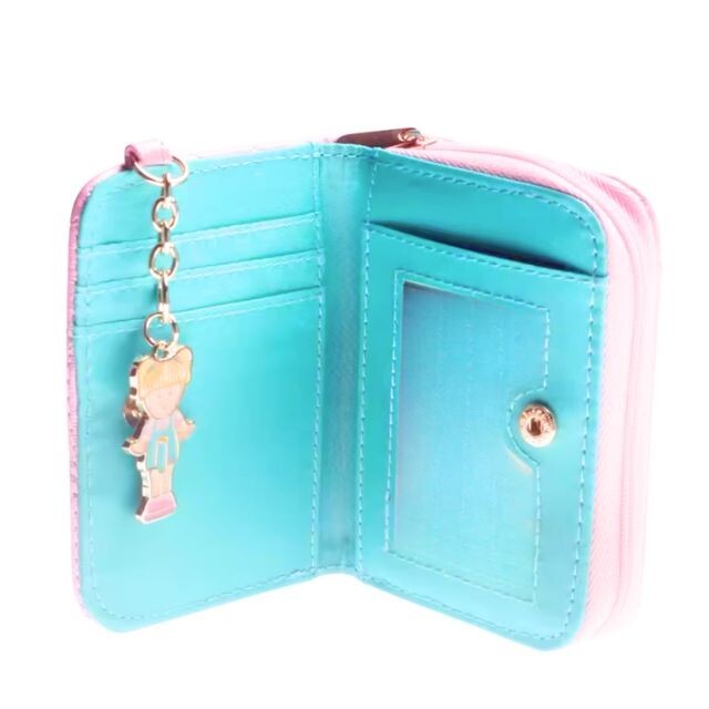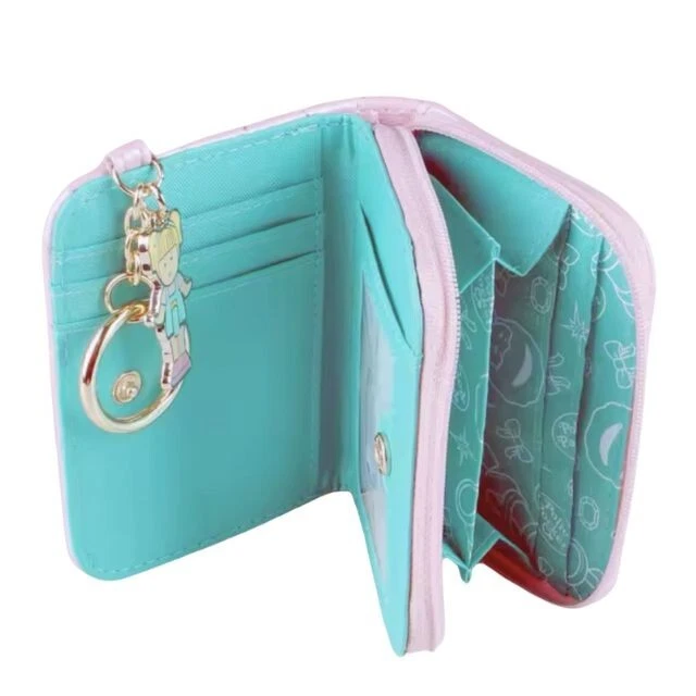 Polly Pocket Pink Quilted LOGO Wallet! Vintage Vibe! Kawaii Keychain set 1. Adorable Design This wallet features a charming design with the iconic Polly Pocket logo, making it an irresistible accessory for fans. The quilted pink exterior is both stylish and cute, perfect for young fashion enthusiasts. 2. Compact and Convenient Designed to be compact, this mini wallet is ideal for carrying just the essentials. Its small size makes it easy to fit into a small bag or pocket, ensuring you always have your important items handy. 3. Practical Storage Despite its size, the wallet offers practical storage with multiple card slots, a clear ID window, and a zippered pocket for coins or small items. This organization helps keep your belongings neat and easily accessible. 4. Fun Detailing It comes with a cute keychain featuring a Polly Pocket character, adding a playful touch. This keychain not only decorates the wallet but also serves as a fun charm or can be used to attach the wallet to a bag for easy access. 5. Vibrant Color Contrast The wallet boasts a delightful color contrast with a pink exterior and turquoise interior. This not only makes it visually appealing but also helps in quickly identifying items inside due to the bright interior. Please Note: Slight color variations may occur due to monitor settings. Thank you for your understanding.