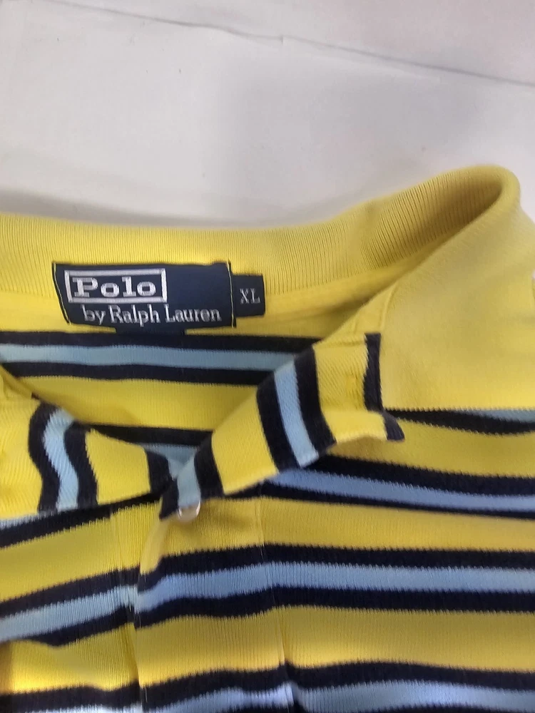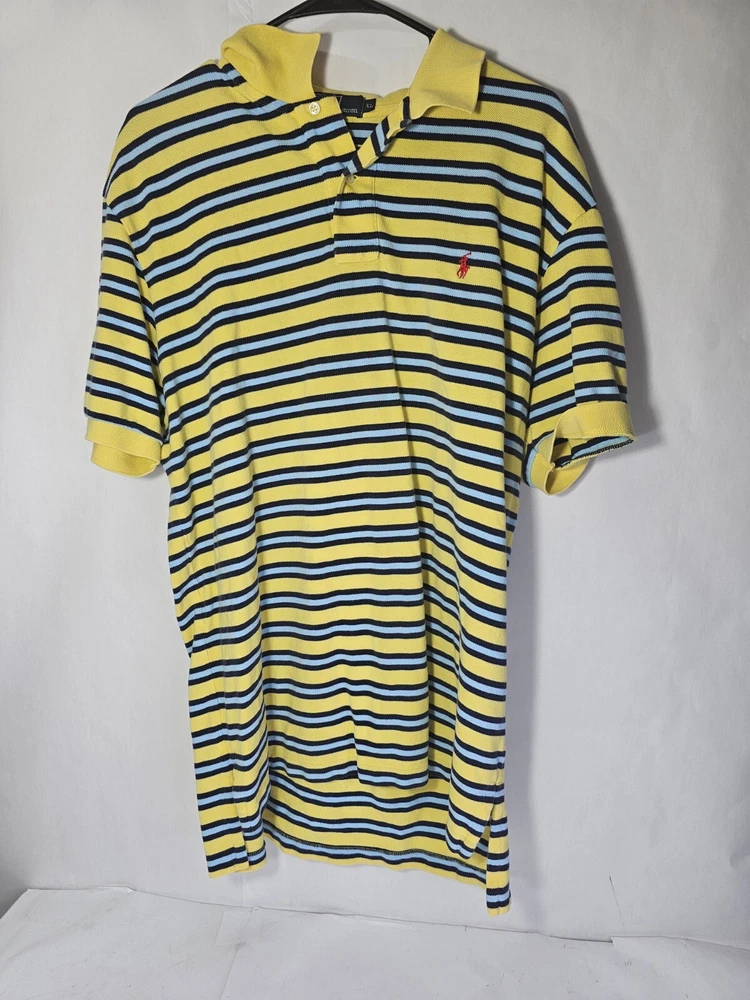 Polo By Ralph Lauren Mens XL Yellow Blue Short Sleeve Polo Golf Shirt. Shirt has been washed and cleaned.
