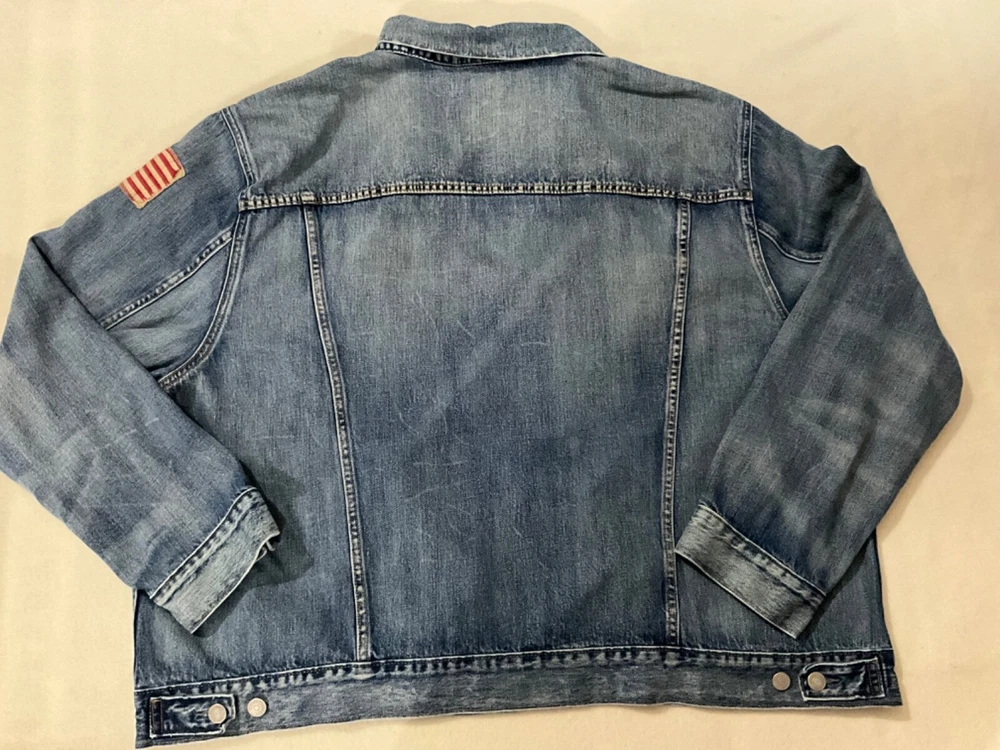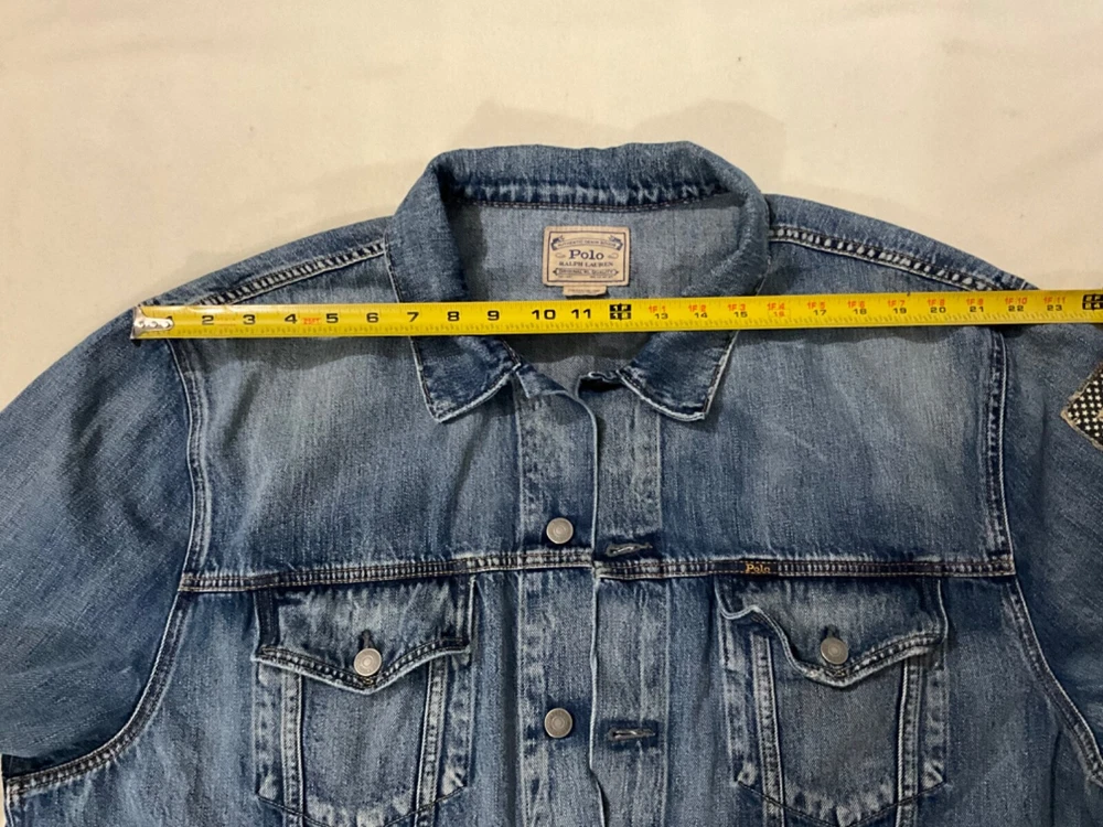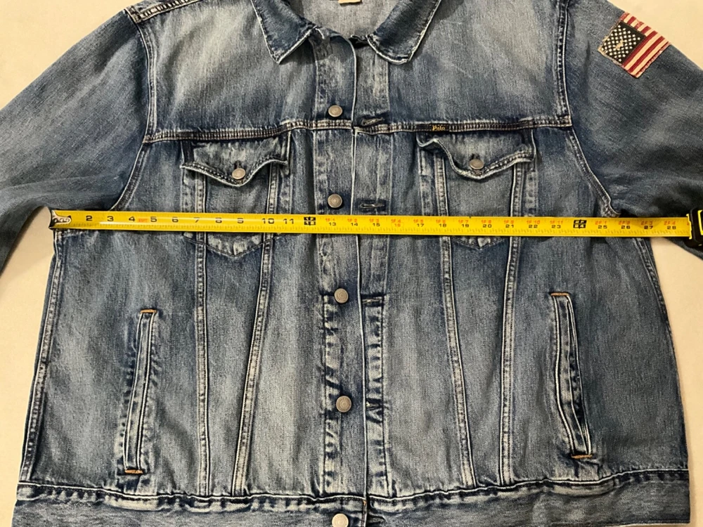 Fall is here and we all could use another layer to put on. Finish your outfit with this timeless Ralph Lauren denim jacket. Preowned in pristine condition, not showing any signs of wear. Size 2XB (big and tall 2xl). Has American flag patch on left shoulder. Measurements are provided in pics description. Comes from smoke and pet free home. Worn 2 seasons. Check my other listings for more designer Ralph Lauren pieces. Make a great Christmas present for brother , husband , father , friend. Combined shipping accepted.