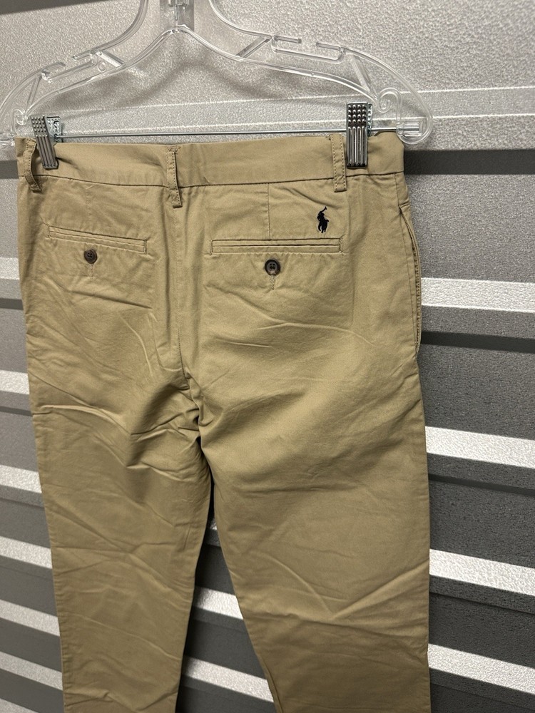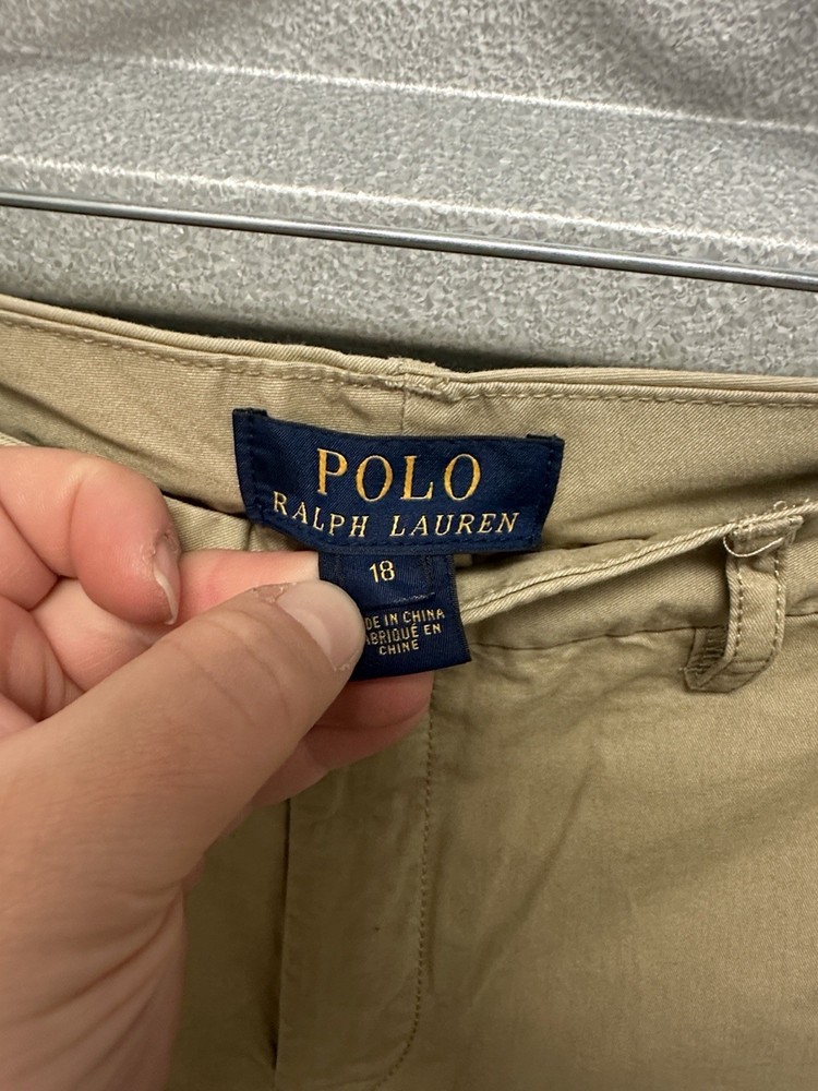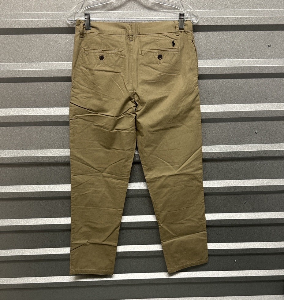 Great pre owned condition Size 18 Waist: 15 inches Length: 30 inches Rise: 9 inches Stylish and versatile boys tan pants perfect for any occasion. Comfortable fit and classic design.