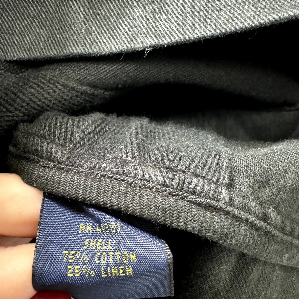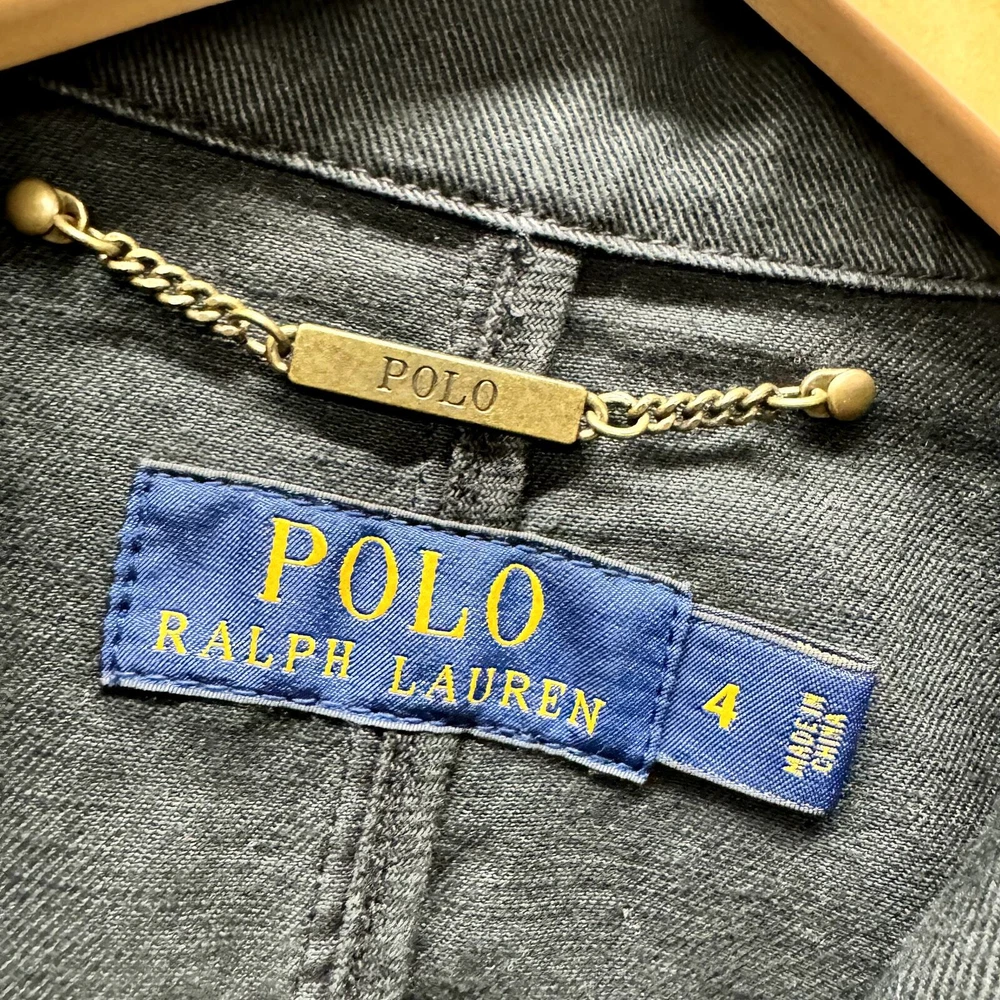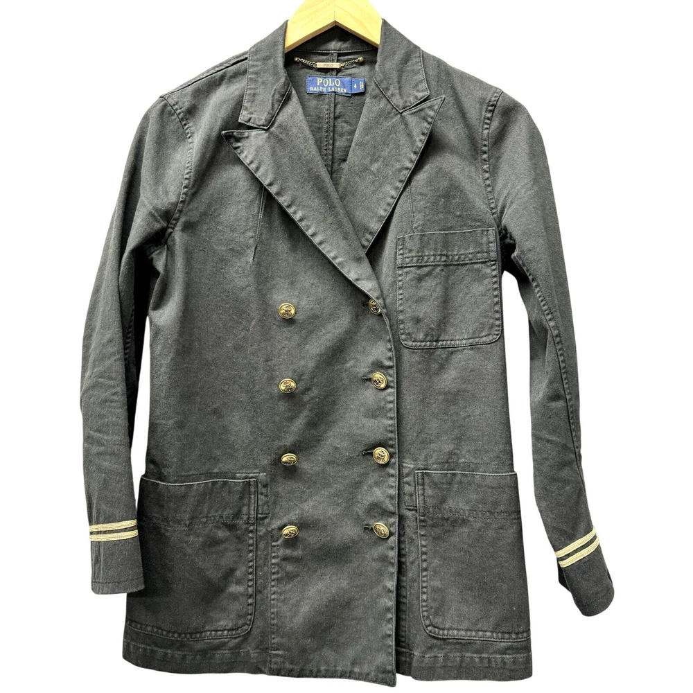 Polo Ralph Lauren Blazer Womens 4 Black Denim Military Double Breasted Gold Piping + Pockets Nautical Buttons Cotton Linen Very good condition, see all pictures for views. •Pit to pit: 17" •Shoulder to hem: 27" Ships out same day or next open postal day. Thank you for your purchase, we appreciate you!