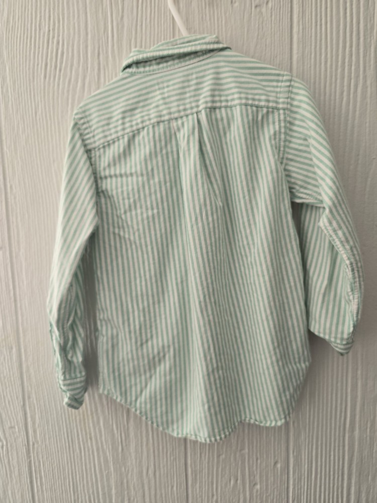 The Polo Ralph Lauren Boys Button-Up Shirt in size 4T is a classic and versatile addition to any young boy's wardrobe. Made from 100% cotton with a medium fabric wash, this green stripe shirt features a collared neckline, long sleeves, and a button-down closure. Perfect for casual occasions in all seasons, it is machine washable for easy care. The shirt is designed with a regular fit and a button-down collar for a timeless and polished look. Ideal for school or everyday wear, this Polo Ralph Lauren shirt combines comfort and style effortlessly.