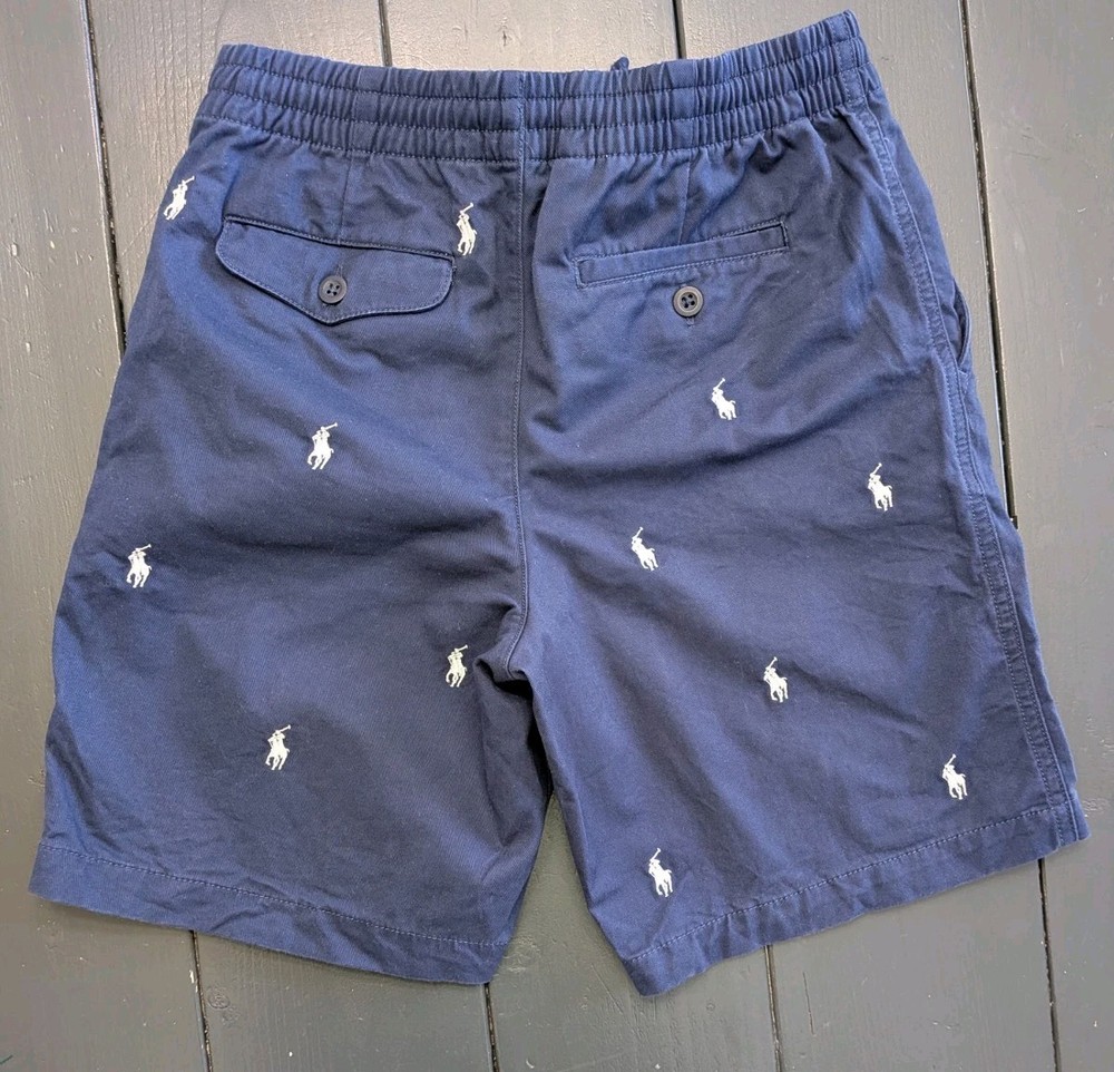 Fabric Wash: Medium Performance/Activity: School Fit: Regular Brand: Polo Ralph Lauren Fabric Type: Twill Pattern: Logo Style: Chino Occasion: Casual Size: 18 Garment Care: Machine Washable Material: Cotton Closure: Button Color: Navy Blue Season: Spring, Summer Department: Boys Theme: Logo, Preppy Features: Elastic Waist, Pockets Front Type: Flat Front