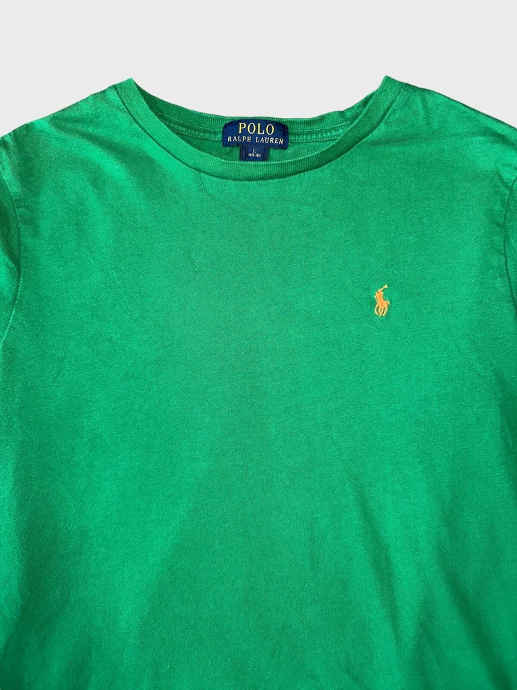 Color: Green Material: 100% Cotton Garment Care: Machine Washable Brand: Polo Ralph Lauren Department: Boys Fabric Wash: Dark Type: T-Shirt Sleeve Length: Long Sleeve Fit: Regular Neckline: Crew Neck Size: 14-16 Pattern: Solid