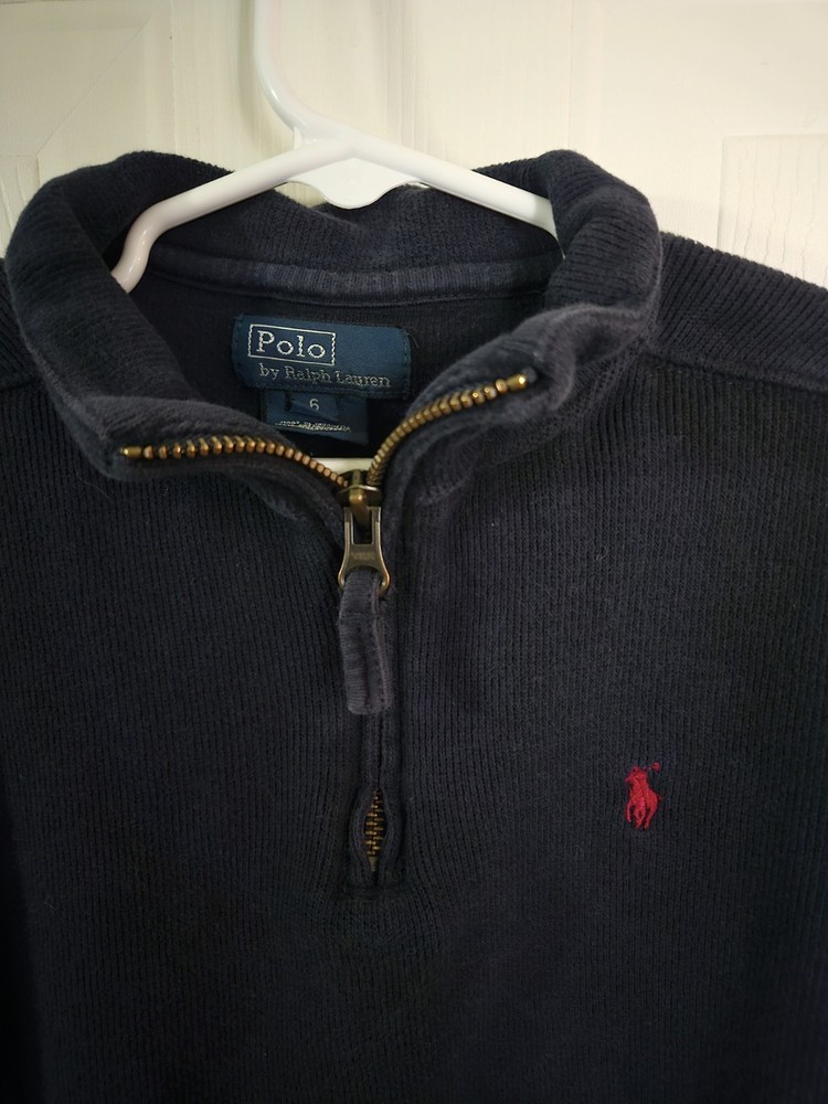 Polo Ralph Lauren Boys Size 6 Classic Navy Blue Quarter Zip Pullover Sweatshirt