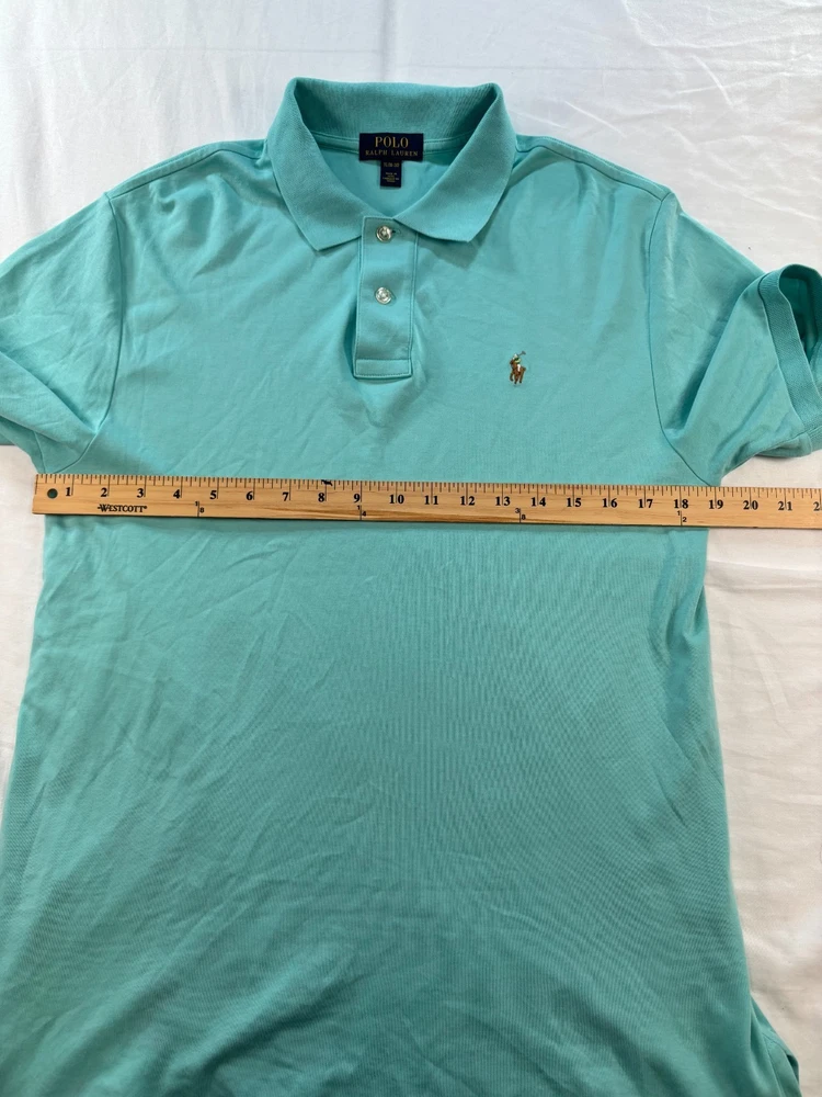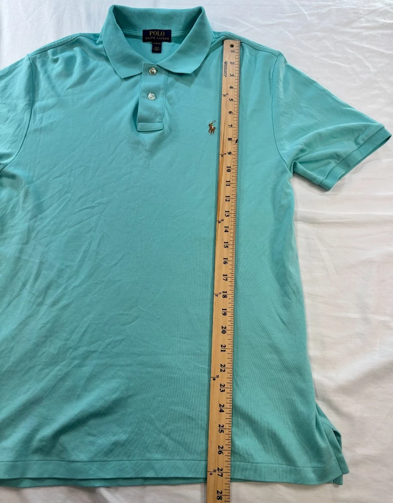 This Polo Ralph Lauren Boys XL (18-20) Shirt in Teal Green is a classic and stylish addition to any young boy's wardrobe. Made from 100% cotton with a soft touch fabric, this shirt features a collared neckline, button closure, and embroidered logo accents. Perfect for casual, party, or travel occasions, this shirt is lightweight and breathable, making it ideal for all seasons. With a solid green color and preppy designer theme, this Polo Ralph Lauren shirt is a versatile and timeless piece that can be worn for various activities such as walking, school, or church. **MEASUREMENTS IN PHOTOS** **FAST FLAT RATE SHIPPING** **STORED IN PET AND SMOKE FREE ENVIRONMENT** **ALL ITEMS SEALED IN WEATHERPROOF BAGS WHEN SHIPPED** Excellent Condition. No rips, tears, stains or smell.
