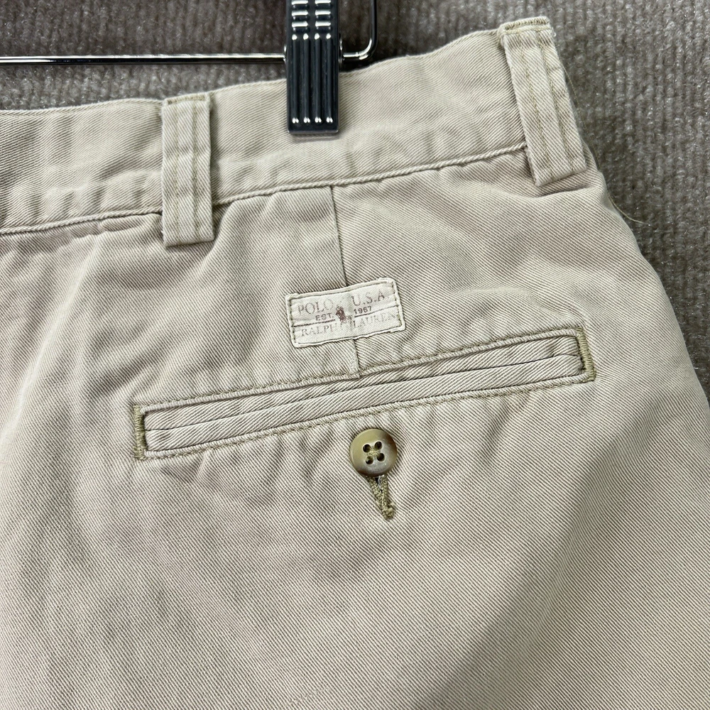 Polo Ralph Lauren Chino shorts Mens 36 (34x7) Khaki Tan 100% Cotton Canvas Item is in good condition. Free from spots or stains and shows normal wear or better. Item measurements are in the photos and as follows: Waist: 34" Inseam: 7" Shipping and Returns I usually ship within 2 business days so you get your order fast! I accept no hassle returns for items within 30 days, even if you just do not like it. Please feel free to ask any questions you may have. I answer most questions as soon as possible and thanks for looking!