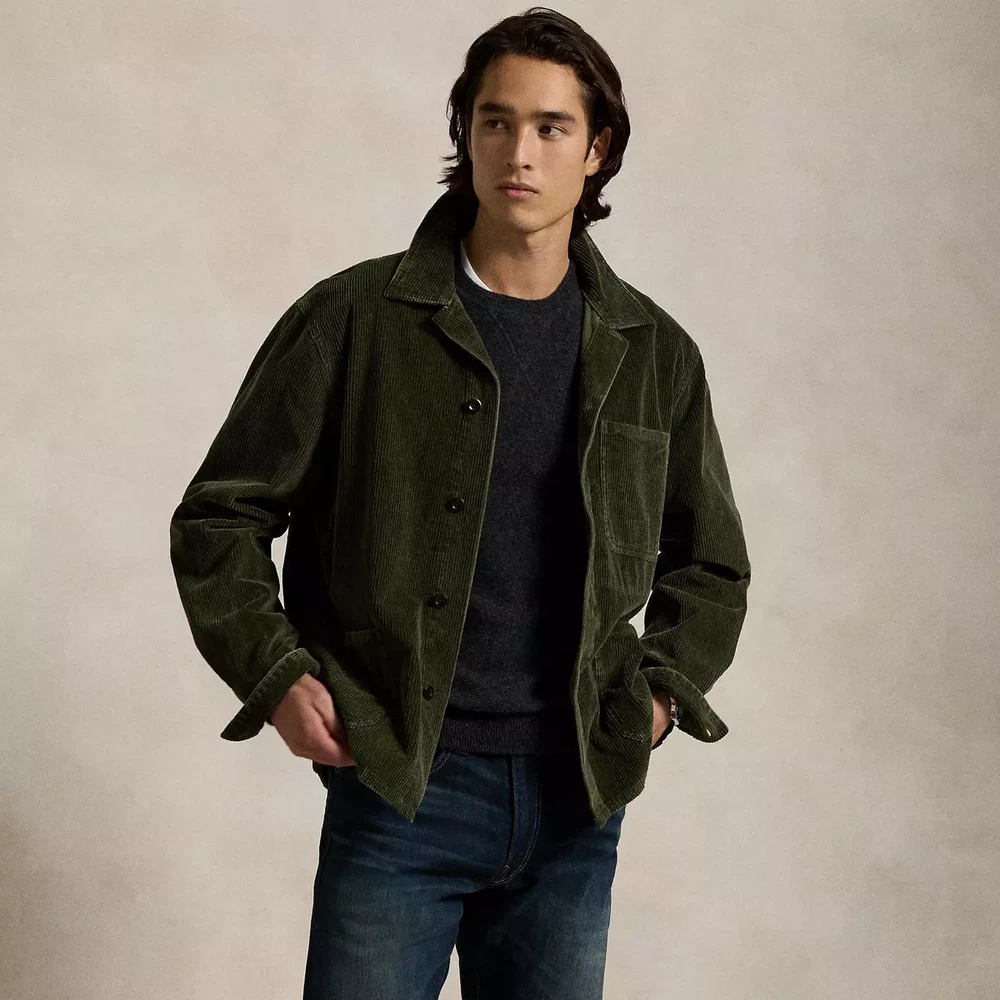 Channel a vintage-inspired vibe with the men's Corduroy Utility Overshirt from Polo Ralph Lauren, a masterful nod to classic French workwear. Made from premium corduroy sourced from a renowned French mill, this Ralph Lauren shirt presents rugged practicality with refined style. Featuring Corozo buttons and sustainable Better Cotton, it offers an eco-friendly approach to everyday fashion. The straight pointed collar and utilitarian-style patch pockets enhance this Polo overshirt's functional appeal. Whether layered over a tee or buttoned up, it's an effortlessly stylish choice for transitional seasons Fabric: 100% Cotton Premium corduroy sourced from a mill in France Inspired by vintage French workwear Contains sustainable Better Cotton Straight pointed collar Front button closure Corozo buttons Long sleeves with buttoned barrel cuffs Chest patch pocket Front waist patch pockets