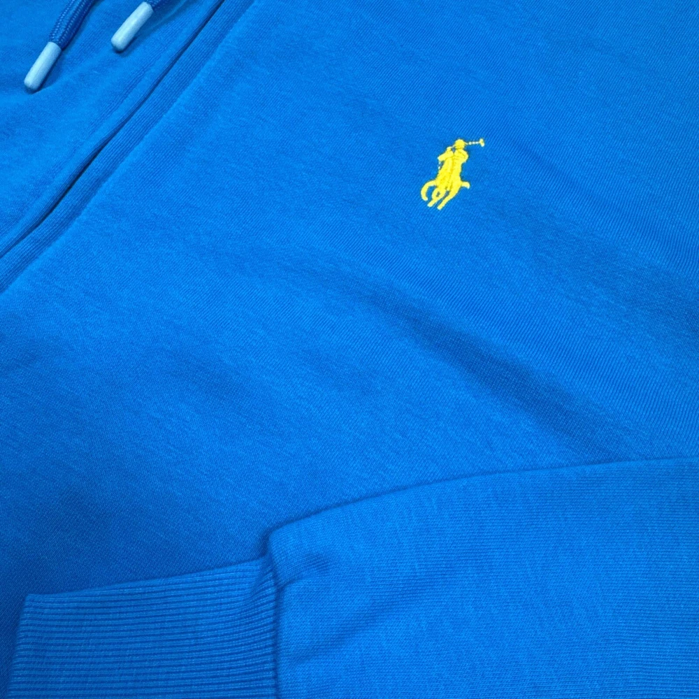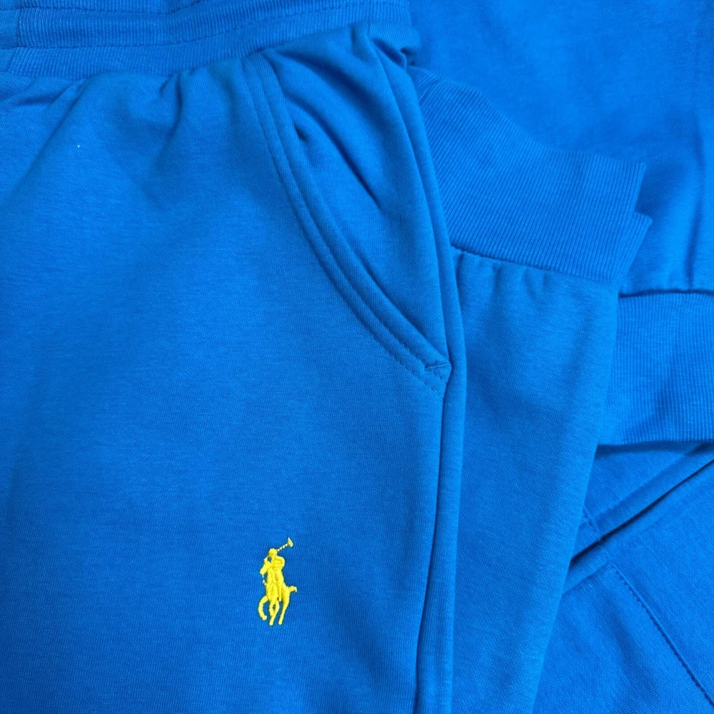 Elevate your activewear collection with this two-piece Polo Ralph Lauren tracksuit in a stunning royal heritage color. The set includes a hoodie and joggers, both made of comfortable and lightweight fleece material. The pullover closure and adjustable waist ensure a perfect fit for any occasion, whether it's a casual day out or a formal event. The tracksuit features a solid pattern with accents of a zip and the iconic Ralph Lauren logo. It's machine washable and easy to care for, making it a perfect choice for all seasons. The set is ideal for various activities, including cycling, running, gym training, and more. Get ready to look stylish and comfortable in this Ralph Lauren tracksuit.