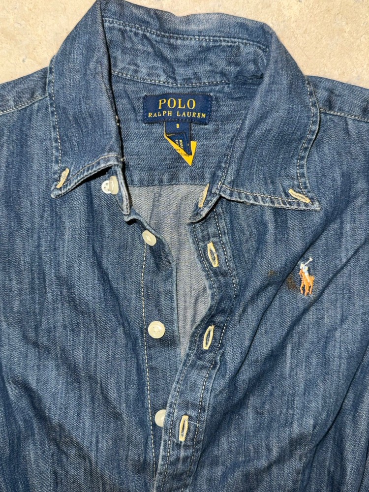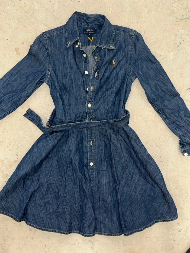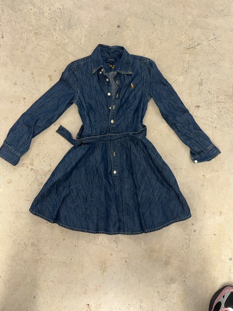 HomePolo Ralph Lauren Girls Dress Size 8 Blue Denim With Belt