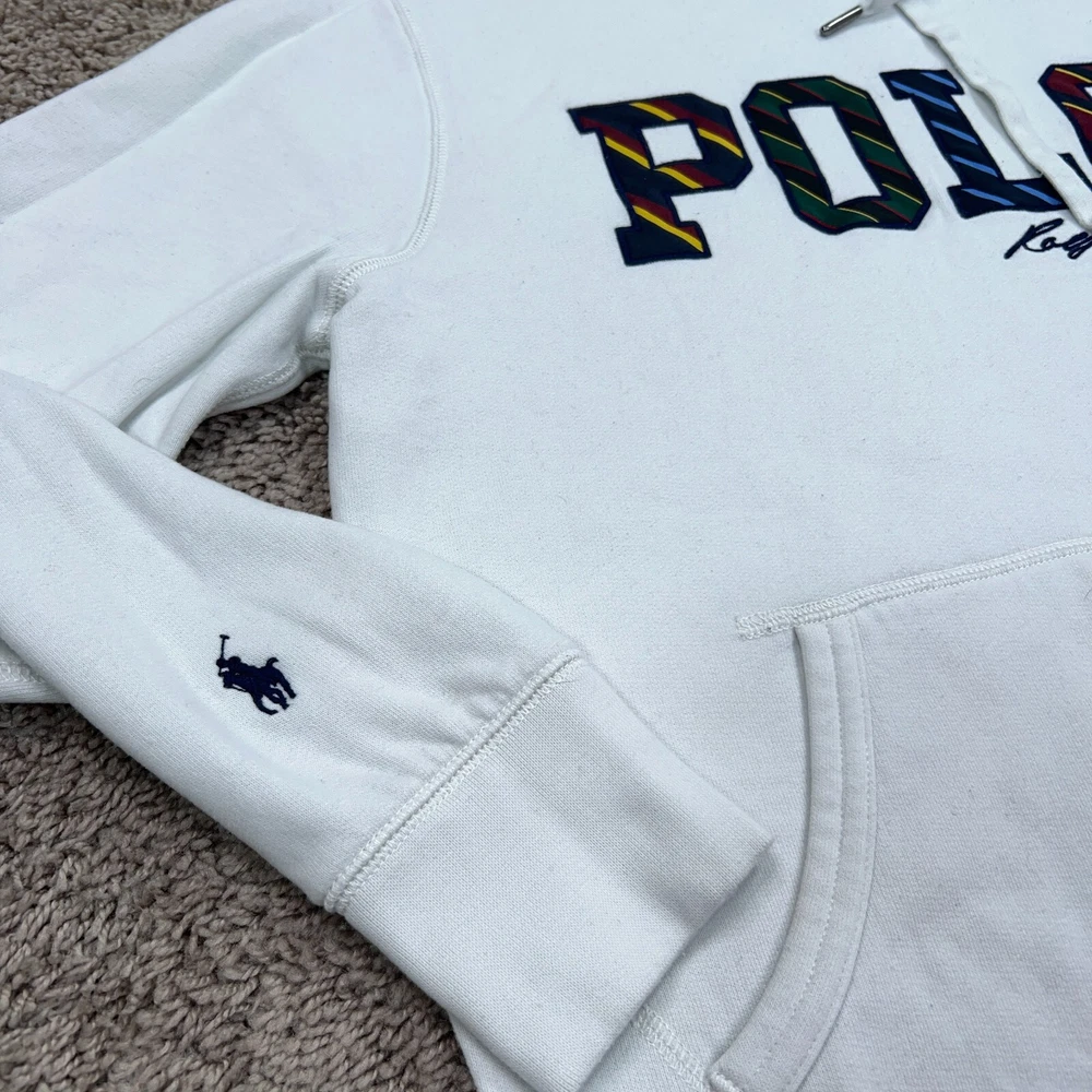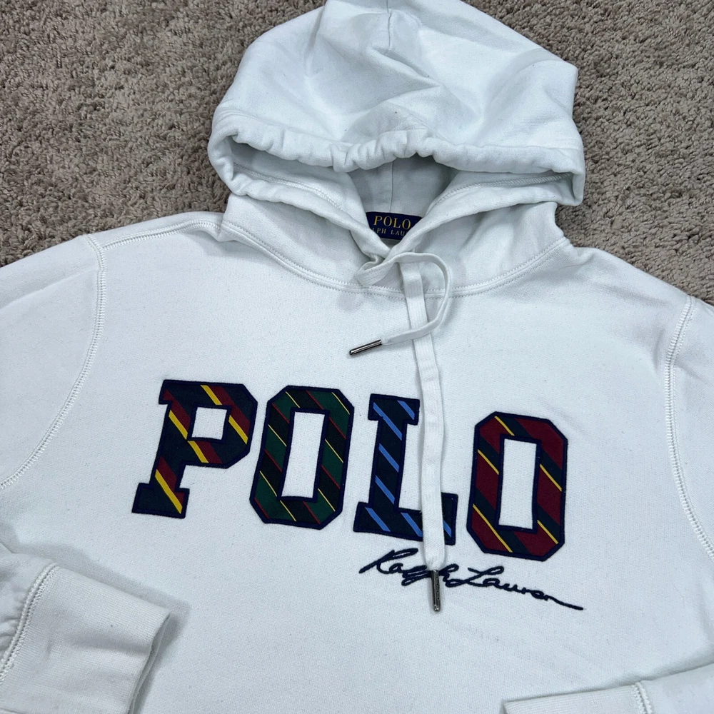 Polo Ralph Lauren Hoodie Mens Small White Striped Script Logo Fleece Pony Logo Condition: - There is some wash wear. - Overall in good used condition. - No holes or stains. - Nice logo. Size: - Mens small. Measurements: - Previous washings may change the sizing written on the tag. - Please refer to the photos above for all measurements. - Please compare our measurements to that of one of your favorite garments. - Please note, item measurements are approximate . All items are bagged and sealed after being photographed, then stored in a smoke free environment to ensure the item is exactly the same as when photographed. I carefully package and ship daily. Feel free to contact me with any questions. All items have been washed per eBay standards & policies.
