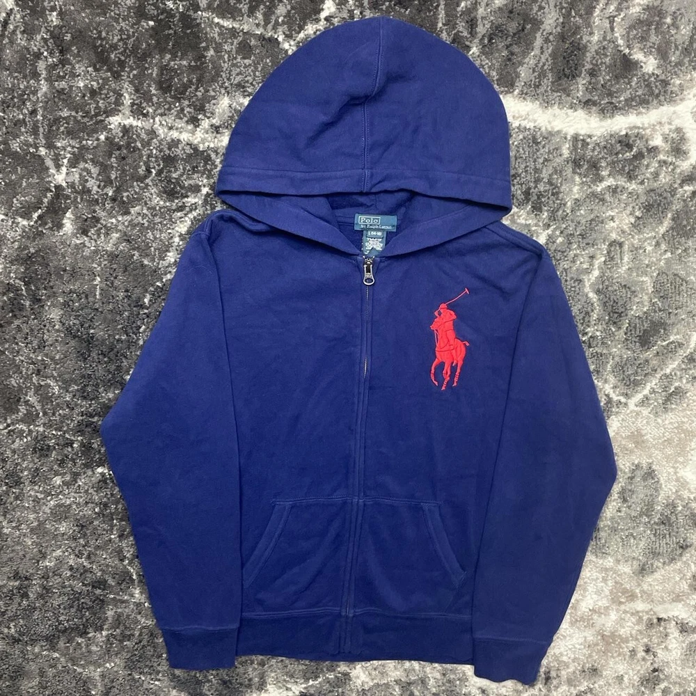 Polo Ralph Lauren Hoodie Youth Large Boys Big Pony Embroidered Zip Sweatshirt