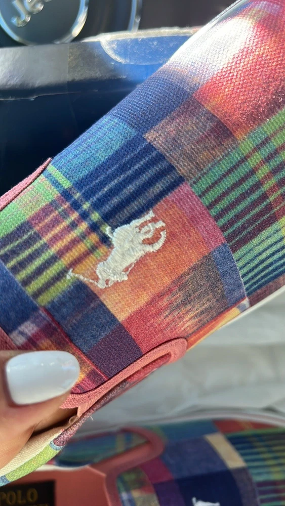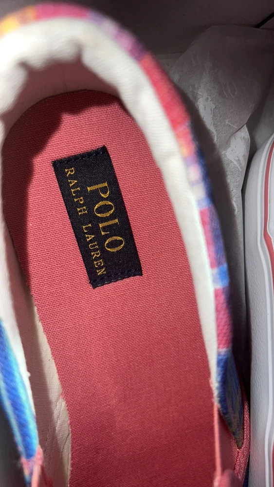 Polo Ralph Lauren Keaton Plaid Slip-On Sneaker 7 Kids ((8 Women Conversion)). Condition is New with box. Shipped with USPS Ground Advantage.
