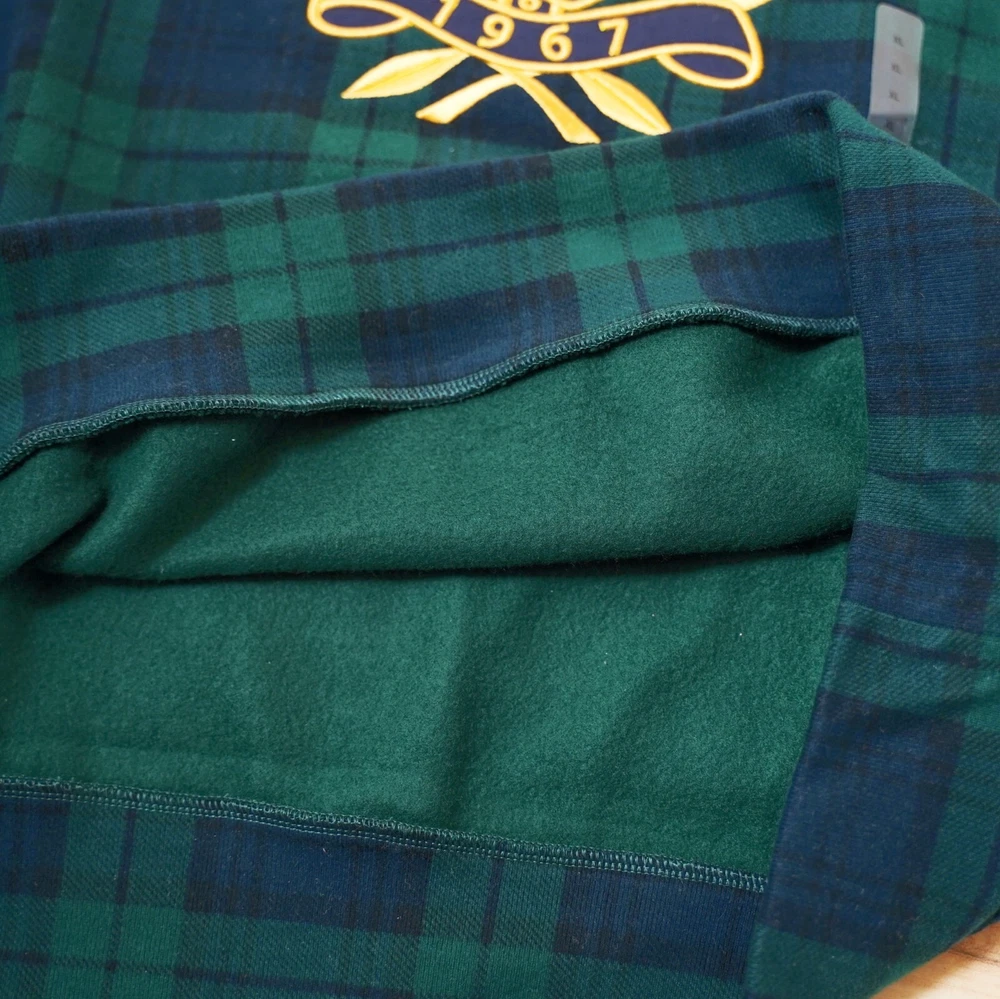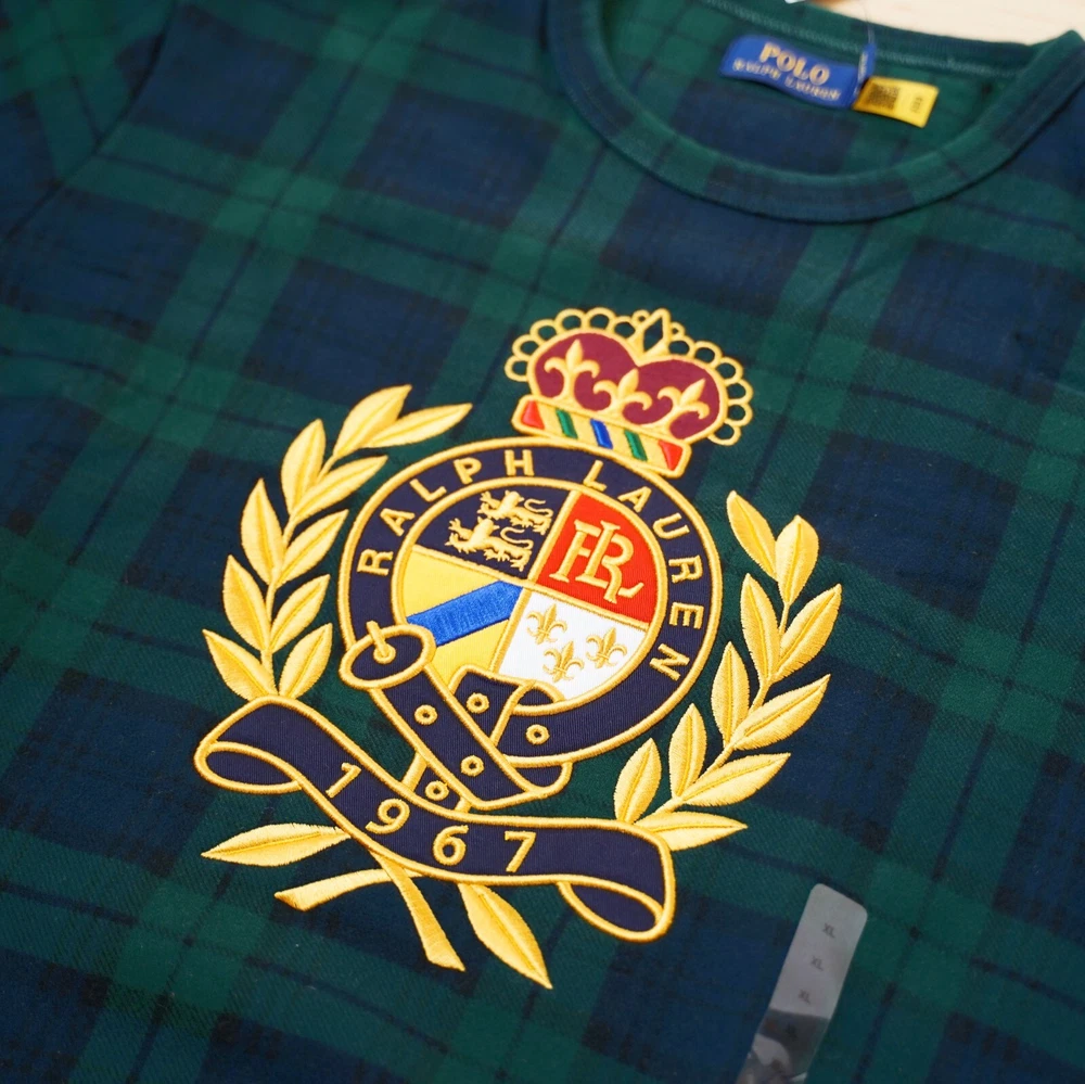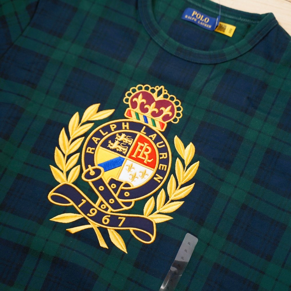 Elevate your casual wardrobe with this Polo Ralph Lauren sweatshirt, featuring a classic plaid pattern in shades of blue and green. The crew neck and long sleeves make it a versatile piece for any occasion, while the heavyweight, soft, and breathable fabric ensures comfort all day long. The shirt is machine washable, making it easy to care for and maintain its quality. This sweatshirt is perfect for men who appreciate a stylish and comfortable look. provide a regular fit for most body types, and the logo accents add a touch of personality to the overall design. Whether you're running errands or relaxing at home, this Polo Ralph Lauren sweatshirt is a great addition to any wardrobe.