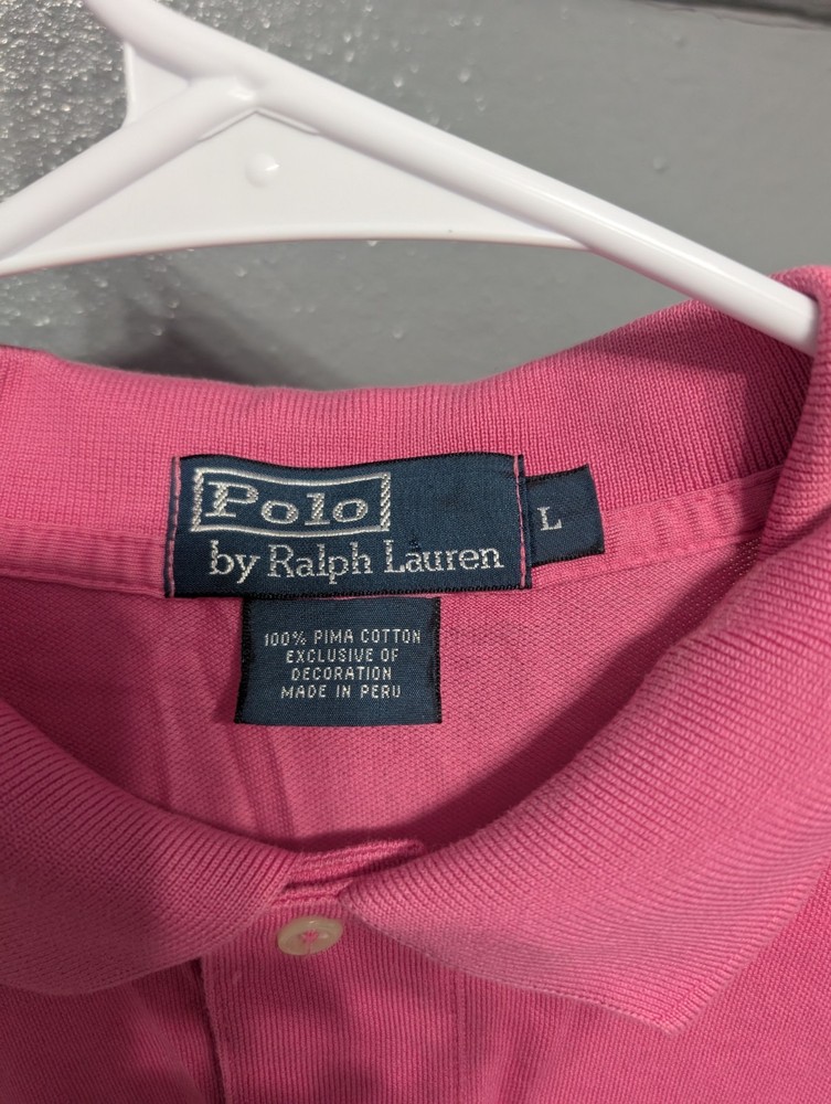 Chest Size: 24 in Sleeve Length: Short Sleeve Fabric Type: Knit Color: Pink Theme: Classic, Colorful, Logo, Preppy, Sports Shirt Length: 29 in Department: Men Size: L Performance/Activity: Cycling, Dance, Golf, School, Walking Type: Polo Product Line: Polo Ralph Lauren Brand: Polo Ralph Lauren Country of Origin: Peru Season: Fall, Spring, Summer, Winter Size Type: Regular Features: All Seasons, Easy Care, Stretch Material: Cotton Collar Style: Point Neckline: Collared Garment Care: Machine Washable Personalize: No Accents: Button, Embroidered, Logo Seller Notes: “great used condition!” Vintage: No Handmade: No Pattern: Solid Fit: Regular Closure: Button Occasion: Activewear, Business, Casual, Christening, Formal, Party/Cocktail, Travel, Wedding, Workwear Fabric Wash: Medium