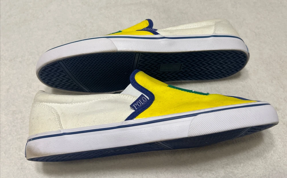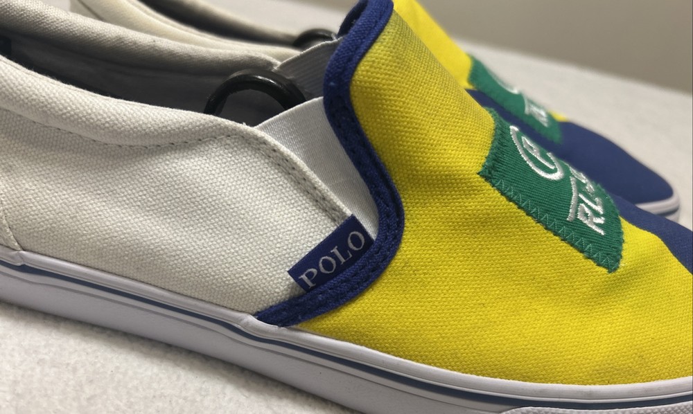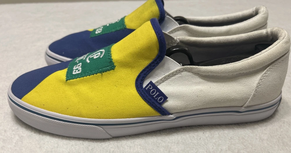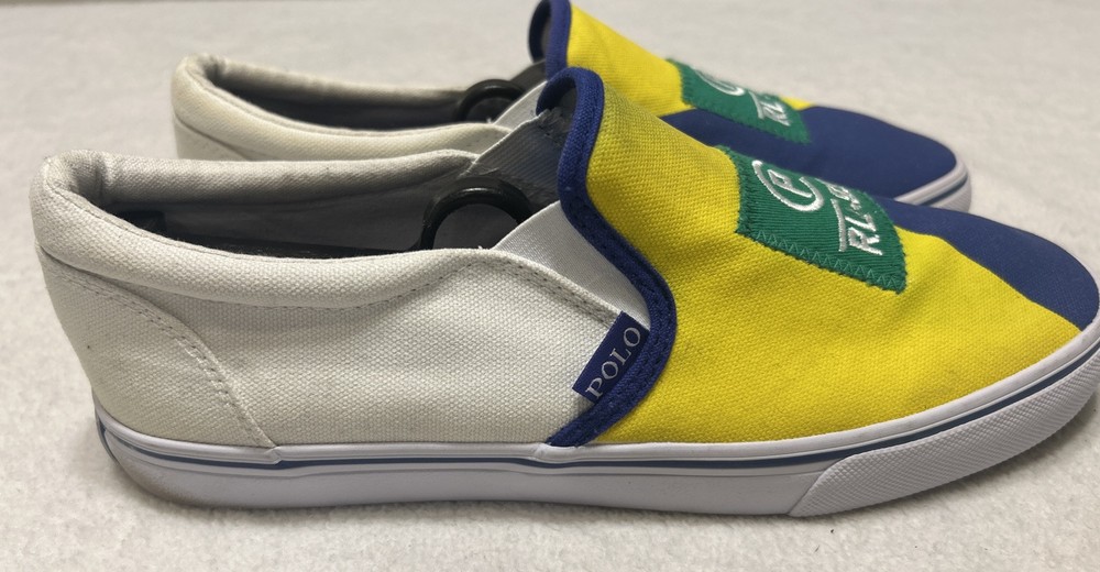 Polo Ralph Lauren Mens Shoes Size 6.5 Yellow Blue White Slip On Sneakers Pony RL