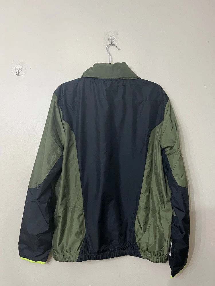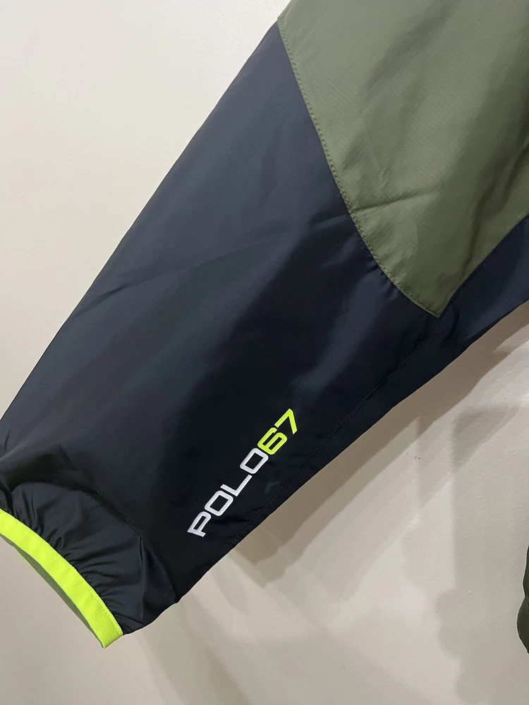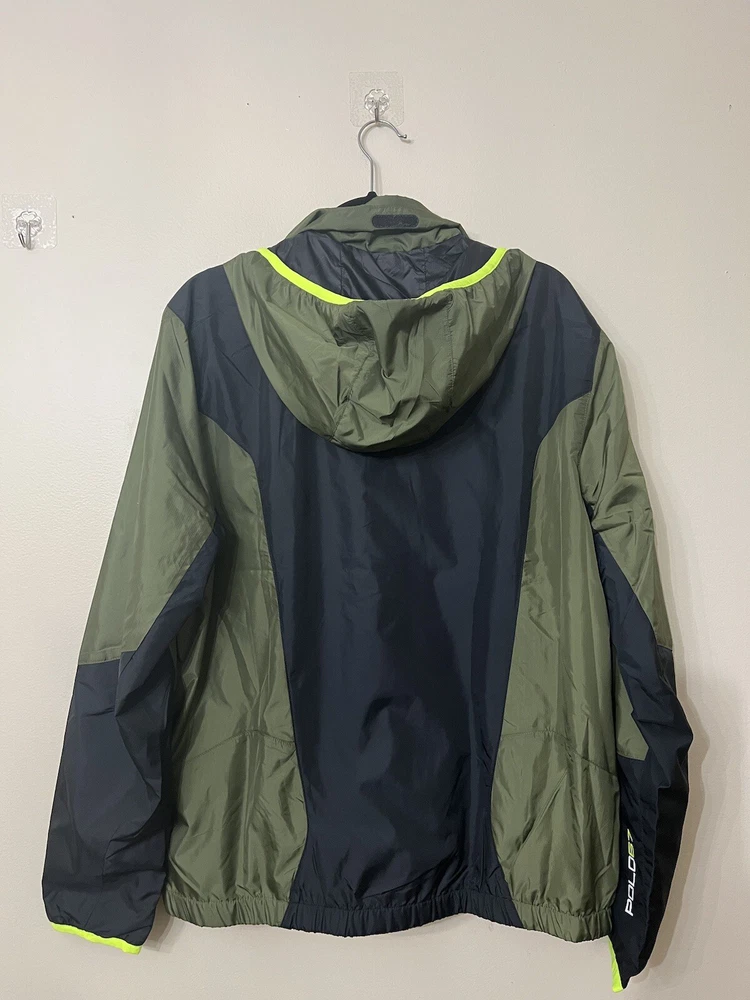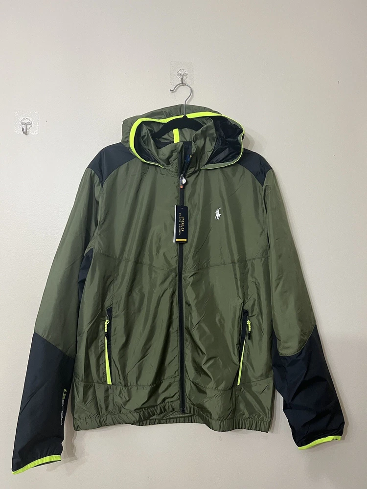 This Polo Ralph Lauren hoodie is the perfect addition to any outdoor activity. With its water-repellent and moisture-wicking features, it's designed to keep you comfortable and dry in any weather. The full zip closure and hooded neckline provide extra protection from the elements, while the XL size and regular fit ensure a comfortable and stylish look. The hoodie is made of lightweight polyester material and features a color-blocked design with the Polo Ralph Lauren logo on the front. It also has multiple pockets for convenient storage. Whether you're hiking, hunting, golfing, or just taking a walk, this hoodie is a versatile and durable choice.