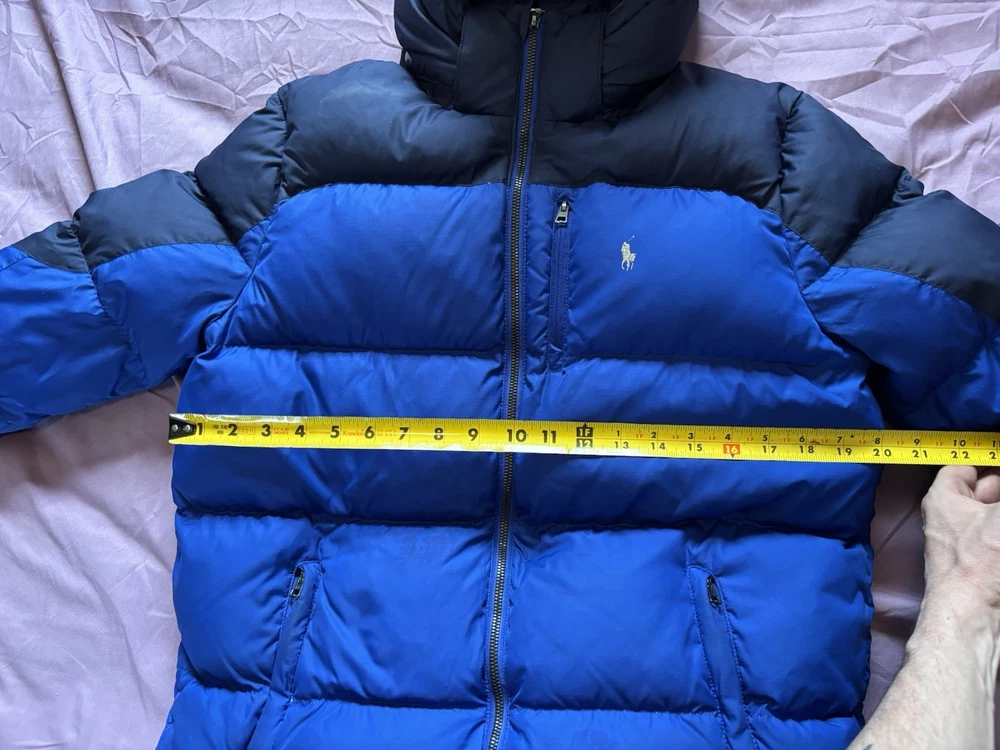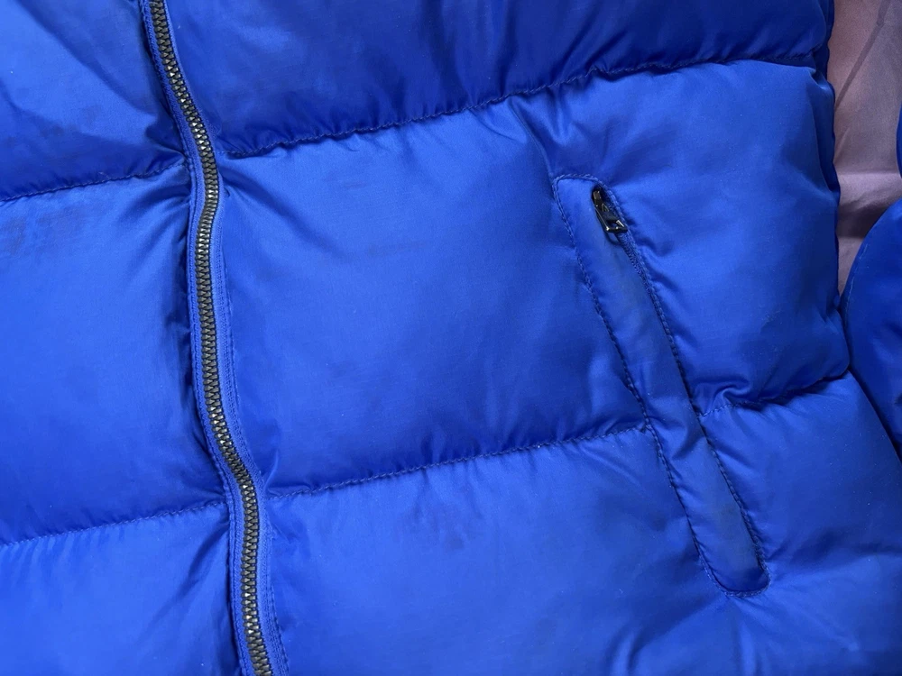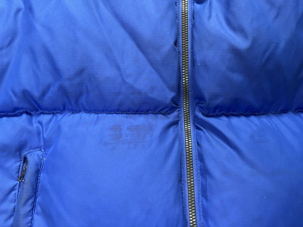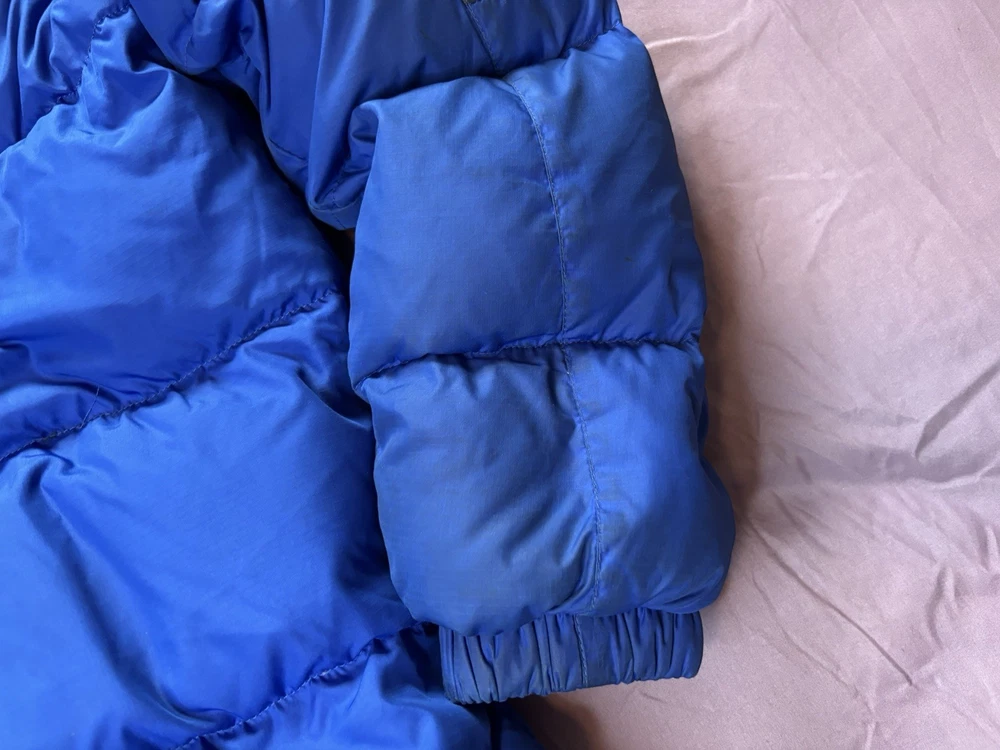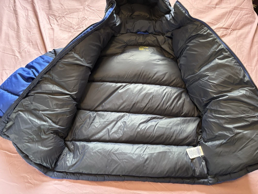 The Polo Ralph Lauren Performance Goose Down Puffer Jacket in Boys XL is a stylish and practical outerwear option for youth boys. Made with high-quality polyester material and insulated with cozy duck down, this jacket is perfect for cold weather activities like skiing or walking. The full zip closure and blue color make it a fashionable choice for casual or activewear occasions. Easy to care for with its machine washable softshell fabric, this jacket is a must-have for any boy's winter wardrobe. There are some dark spots and stains on the jacket. There is a small hole in the hood where down feathers are coming out. Please see photos.