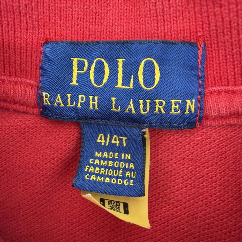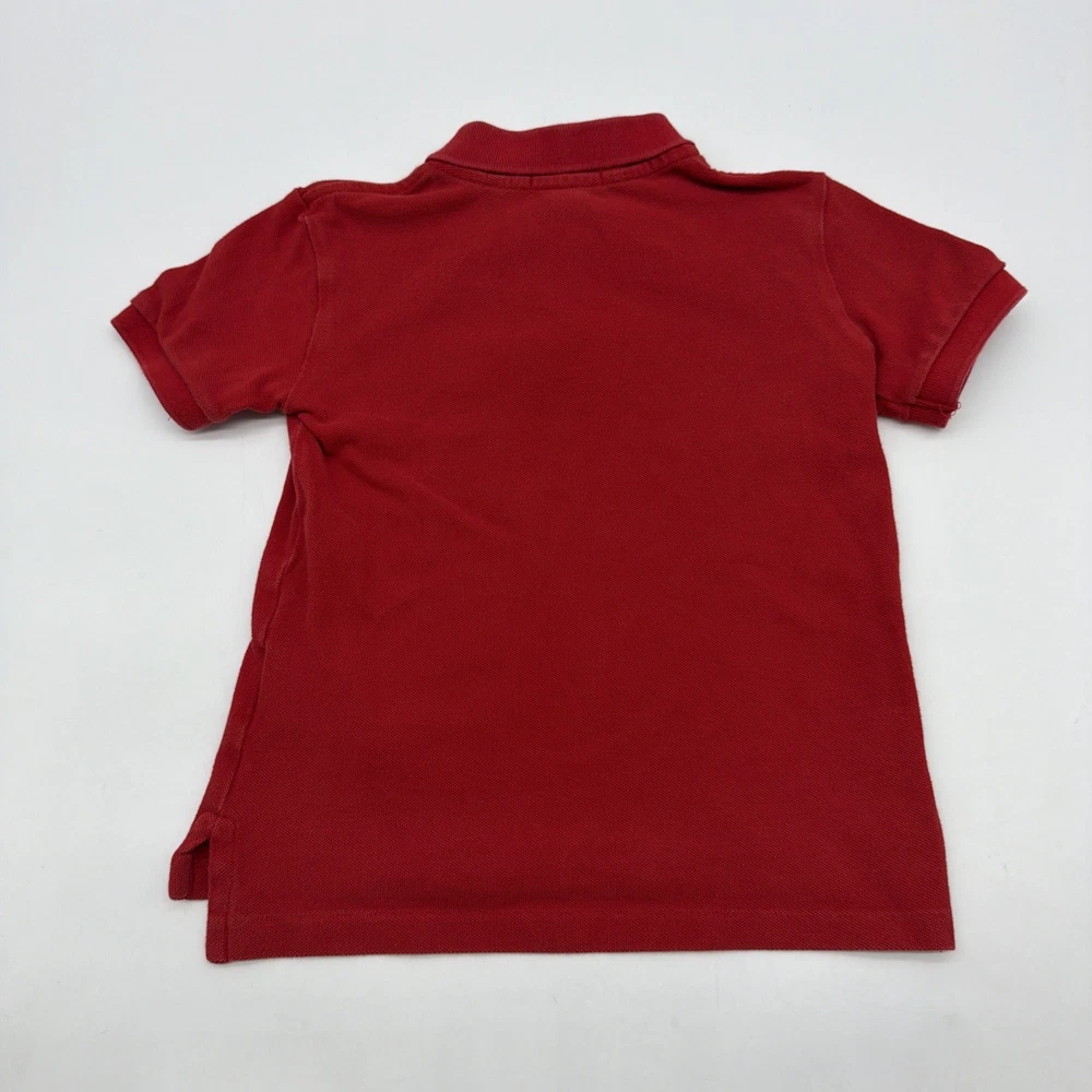 This Polo Ralph Lauren Polo Shirt in red is perfect for toddler boys in size 4T. Made from 100% cotton, it features a classic fit with short sleeves, a collared neckline, and button closure. The shirt is adorned with the signature Polo Ralph Lauren logo and is suitable for various occasions including travel, parties, casual wear, formal events, and christenings. With a pullover style and all-season versatility, this shirt is ideal for active little boys who love to walk, attend school, or enjoy golf. Check pictures for flaws and measurements