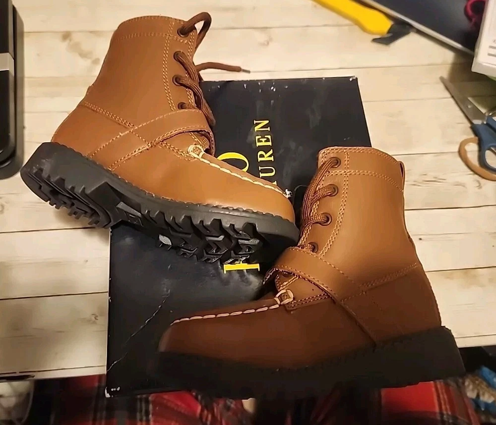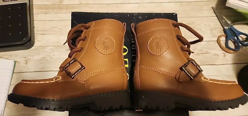 These Polo Ralph Lauren Ranger Hi II Boots are perfect for boys who love boxing and want to look stylish while doing it. The medium width and leather-and-synthetic upper material provide both comfort and durability, making them suitable for everyday wear. With a UK shoe size of 6.5 and a US shoe size of 7.5, these boots are designed to fit perfectly. The brown color and boot character add to their aesthetic appeal, while the Ranger model and brand name ensure quality. These boots come with a box and are made in Mexico, making them a great addition to any boy's shoe collection.