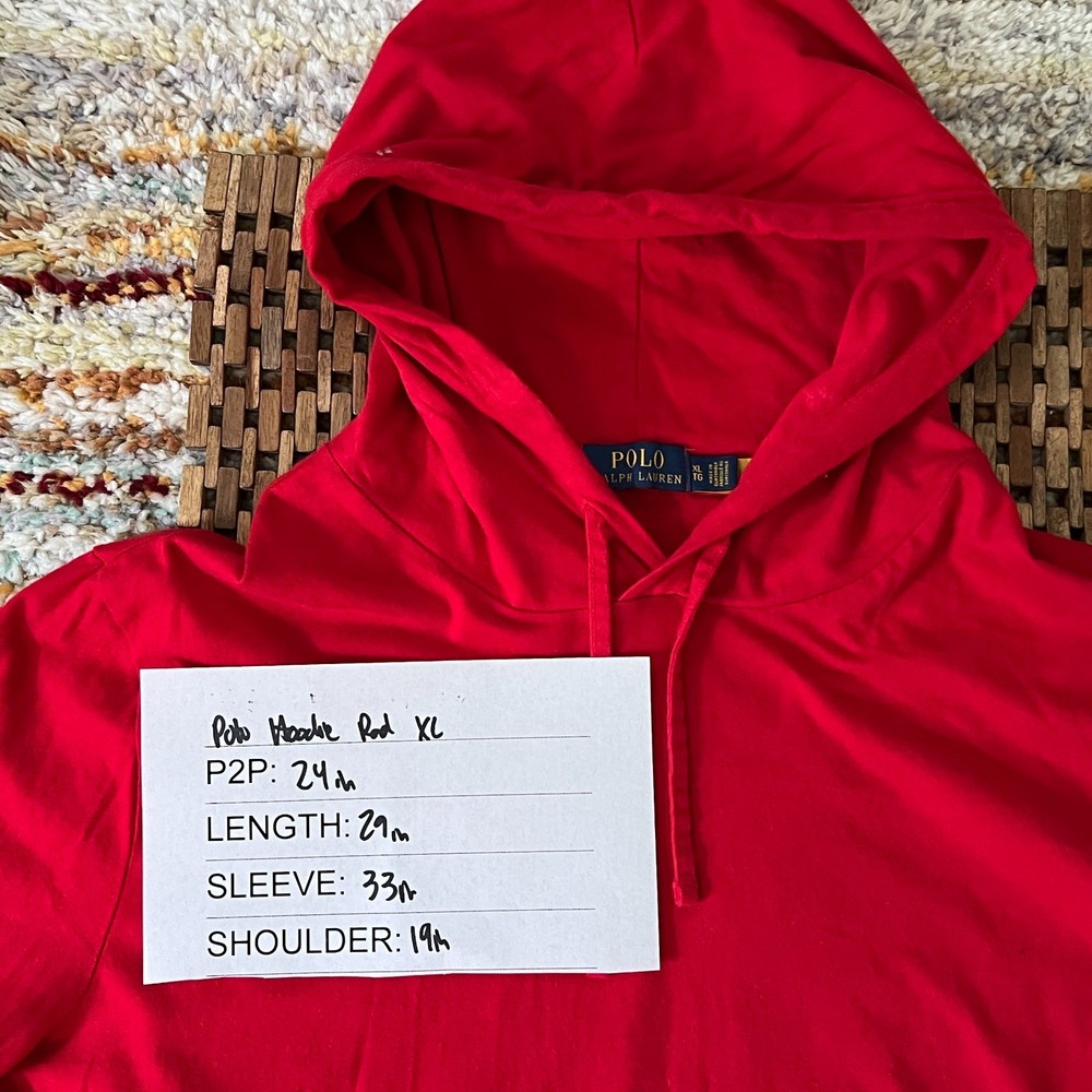 The product is a men's XL Polo Ralph Lauren red pullover hoodie featuring the iconic Big Pony graphic. Made from cozy cotton fleece material, this hoodie is perfect for the winter, fall, and spring seasons. With a classic solid design and long sleeves, this hoodie is machine washable for easy care. It comes in a regular fit with a hooded style, making it a stylish and comfortable addition to any man's wardrobe.