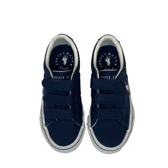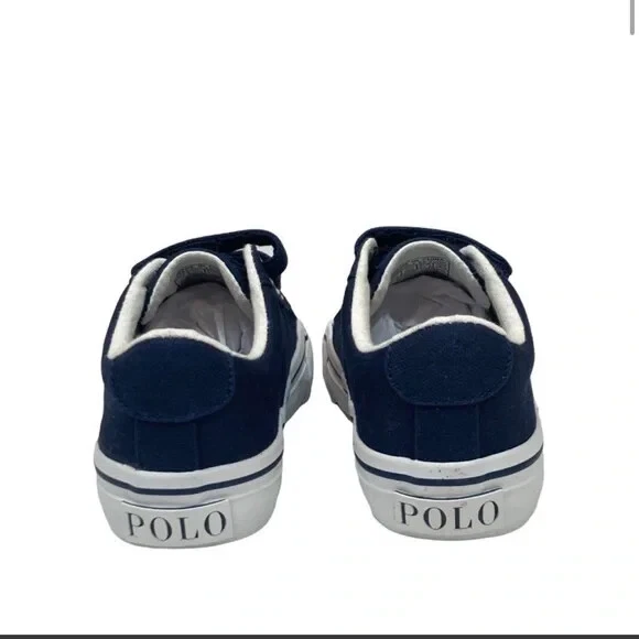 Introducing the Polo Ralph Lauren Sayer EZ Child Sneakers in Navy / Paperwhite. These sneakers are perfect for casual occasions and are designed for unisex kids. The slip-on closure makes it easy for children to put them on and take them off themselves. The sneakers are made of synthetic upper material and are suitable for walking and school activities. They come in US Shoe Size 2.5 and UK Shoe Size 2.5. The shoes are part of the Polo product line and have a USA theme. They are suitable for summer, fall, and spring seasons. The Polo Ralph Lauren RF103551/Sayer EZ model is designed to provide comfort and style for children.