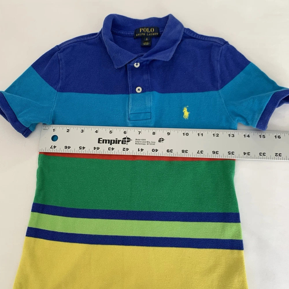 - Polo Ralph Lauren Polo Shirt Boys Small Size 8 Multicolor Stripe: Blue Green Red Yellow Stripe Short Sleeve Cotton Gently used preowned condition. See photos for proper expectation of condition. Please see photos for measurements FAST Shipping! 1-3 business days. Tags: everyday versatile comfortable easy to wear classy casual favorite y2k 80s 90s 013251 preppy academia academic tennis polo golf yacht nautical college playful flirt aesthetic wardrobe outfit elite fashion designer old money kids big toddler infant newborn boys happy durable daycare school playdate adorable cute preppy colorful organic fun playful childrenswear childsplay toys sustainable outdoor play colorful
