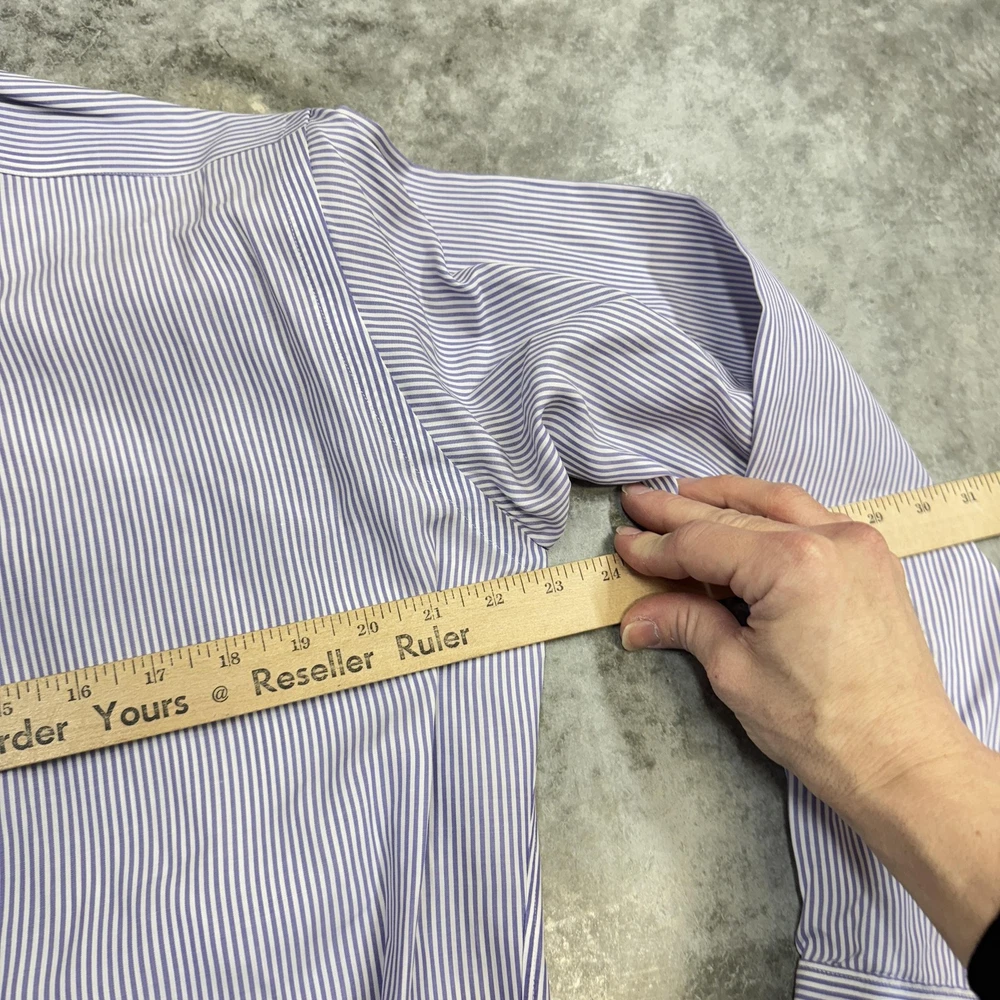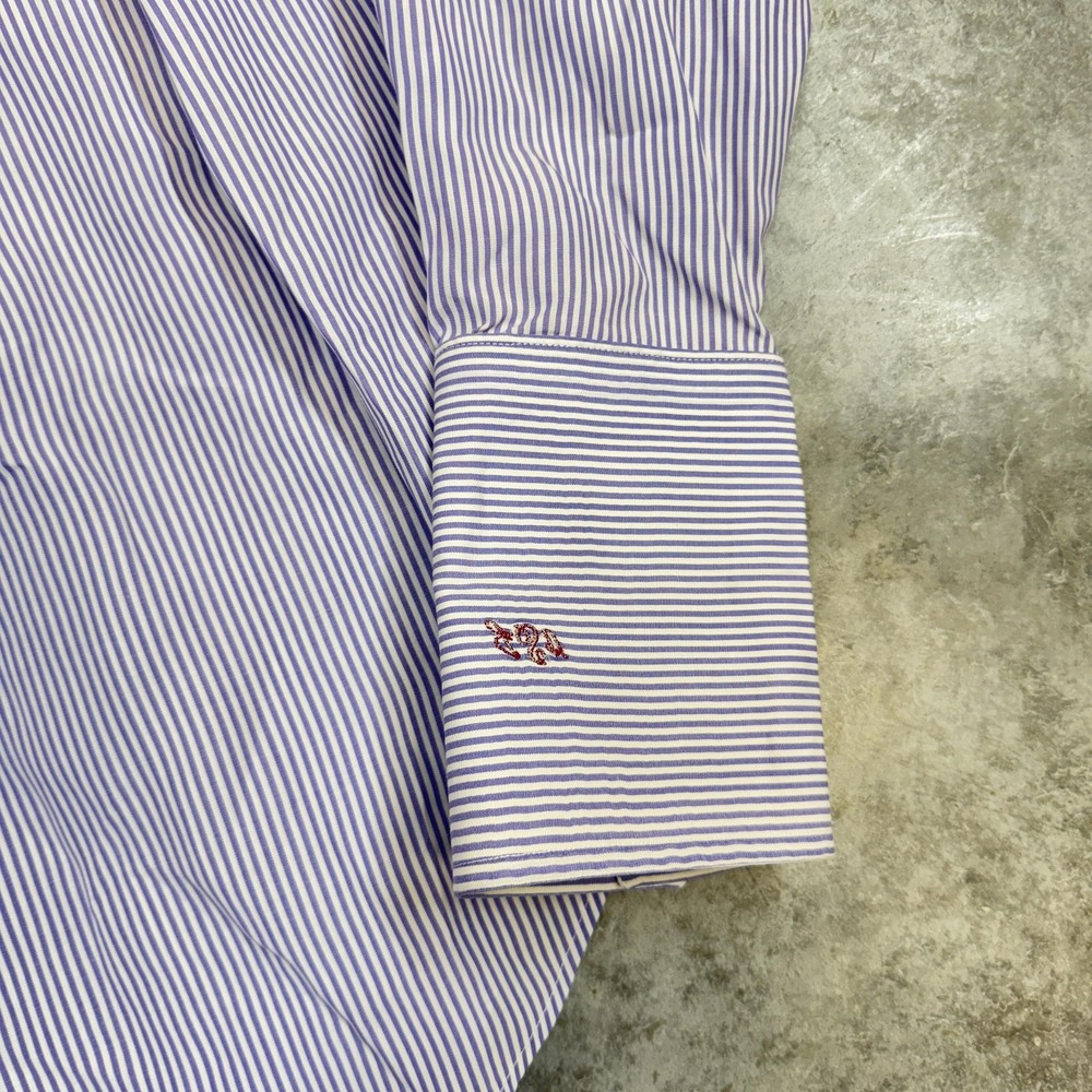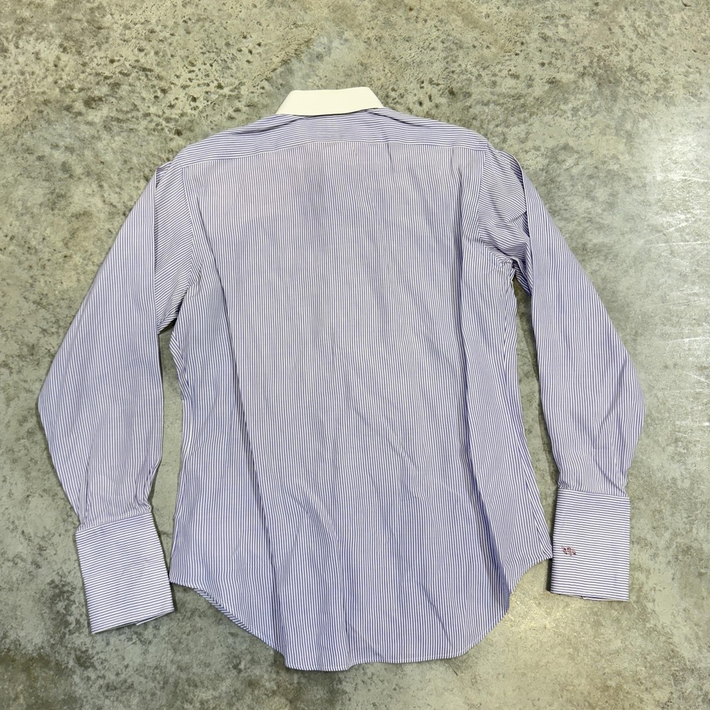 Roundtree & Yorke Gold Label Shirt Mens 17.5 35 Purple Stripe Fitted Non Iron