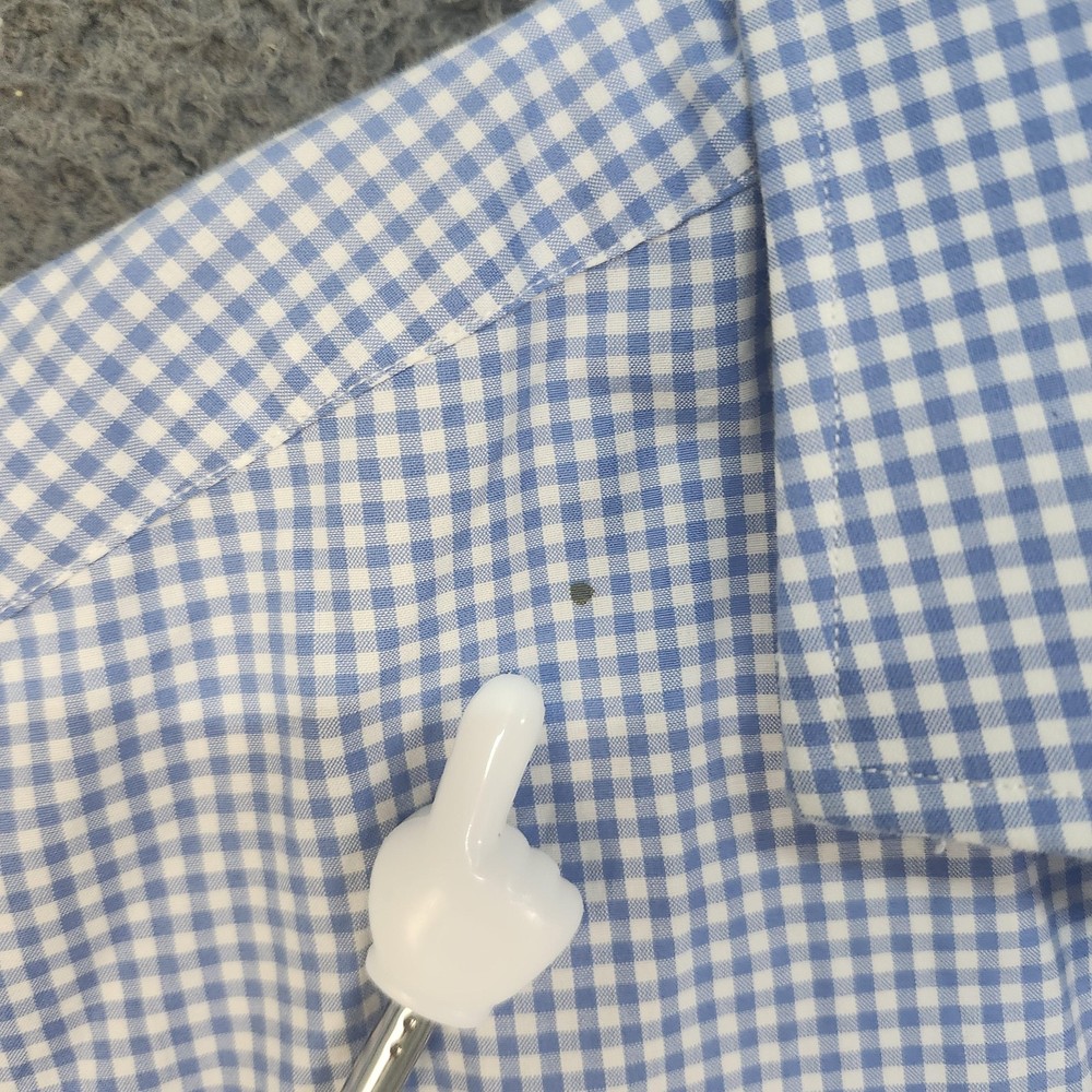 Johnston & Murphy Dress Shirt Mens Large Blue Check 100% Cotton Long Sleeve