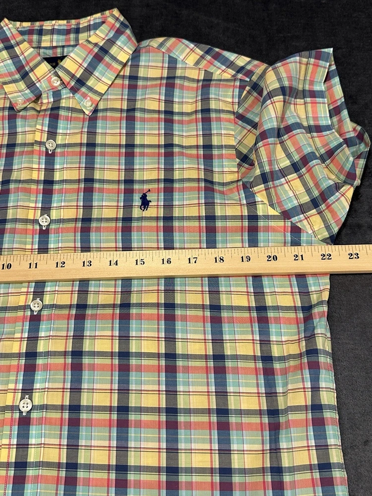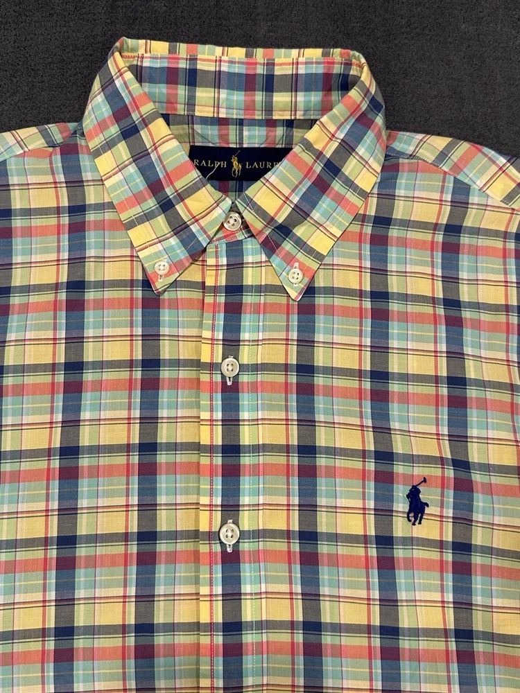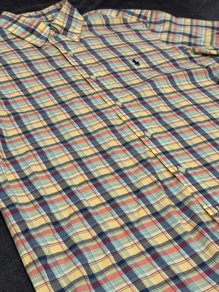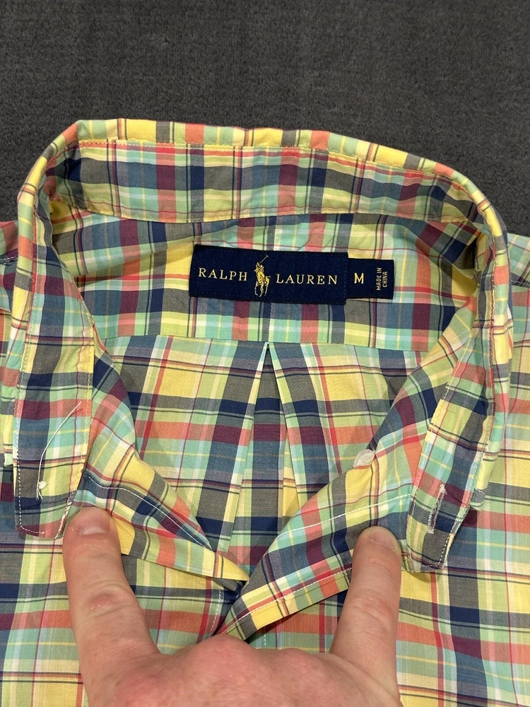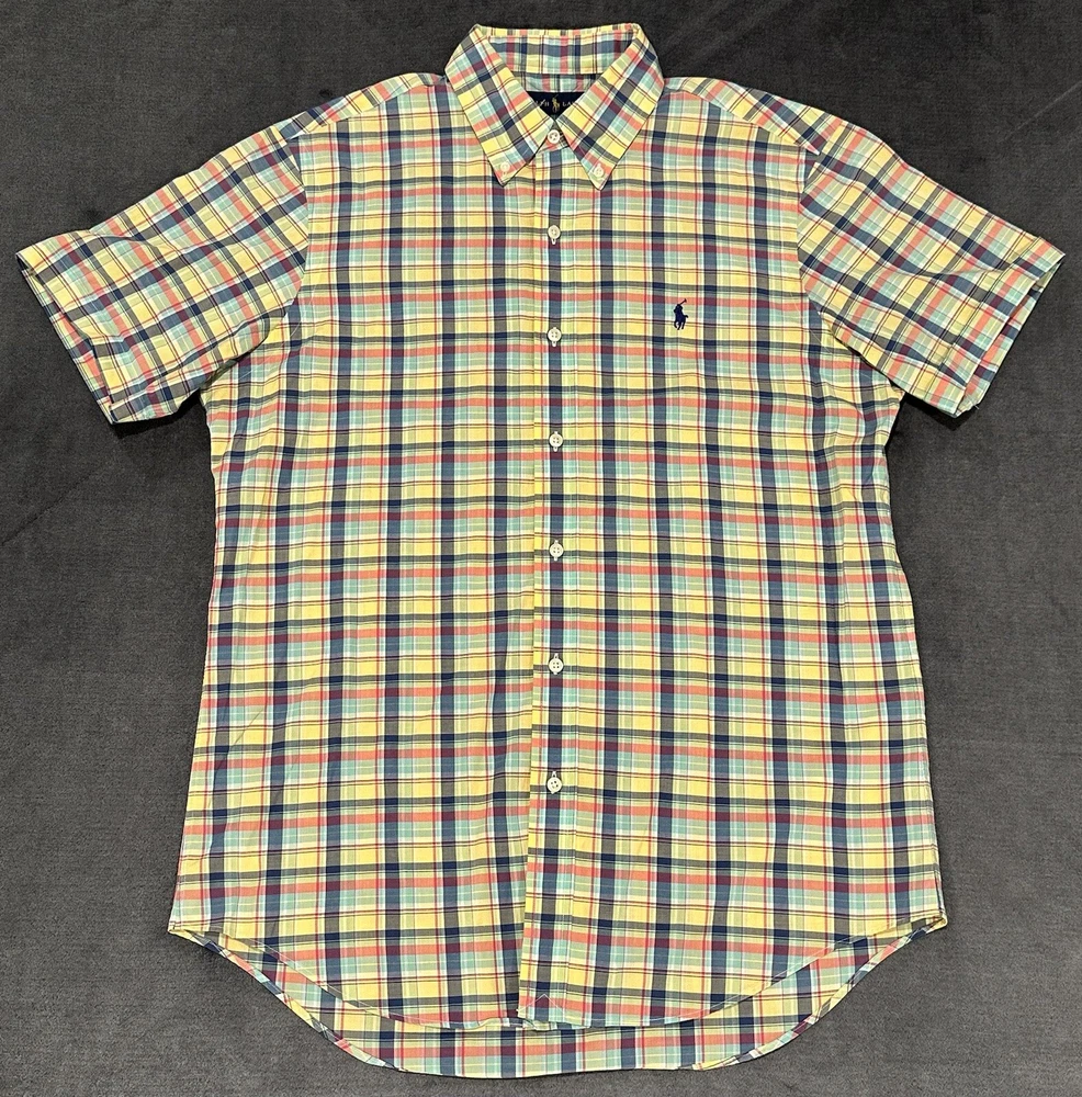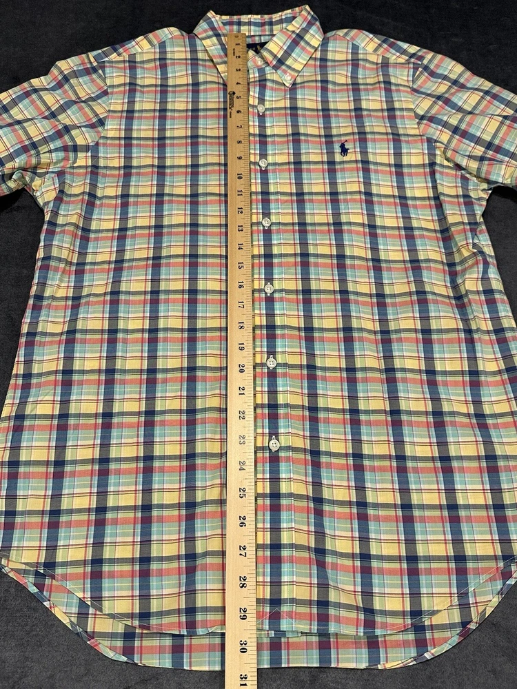 Ralph Lauren Polo Short Sleeve Casual Button Down Shirt. Men's Size M Multicolor Plaid Colors - Yellow/Red/Green/Blue (Blue Polo Logo) 100% Cotton NOTE: Please see all photos for condition as all flaws will be shown throughout the photos! * COLORS MAY BE DARKER OR LIGHTER OR SLIGHTLY DIFFERENT DUE TO MONITOR/PHONE/TABLET SETTINGS. Please refer to the "condition description" for inspection notes. Actual measurements may differ from the tag due to potential shrinkage, stretching, hemming, or manufacturer error. It is common for pre-owned jeans to shrink or stretch based on how they were washed/dried/worn from previous owners. If measurement differs more than 1.5" either way from what the tag says, I will list the items as actual measurements to ensure proper fit. I recommend measuring yourself before ordering online to help find the perfect fit for you. My shipping discount: $3 shipping on each additional item you add to your order!