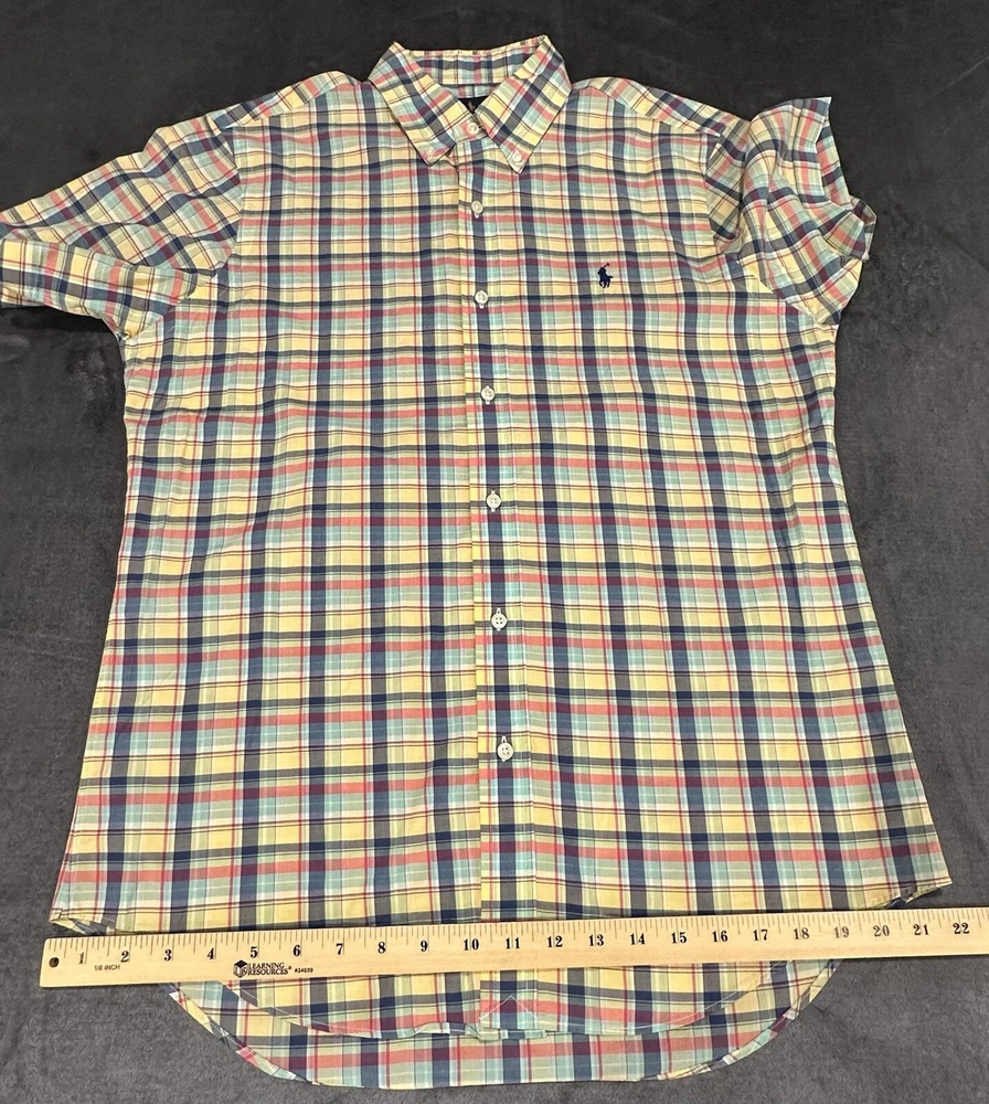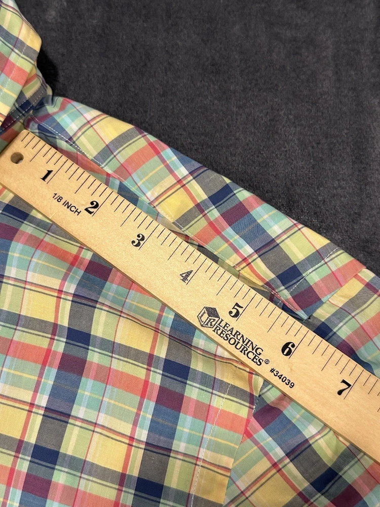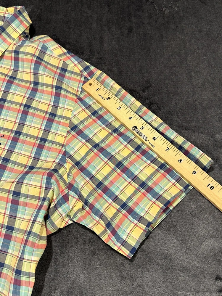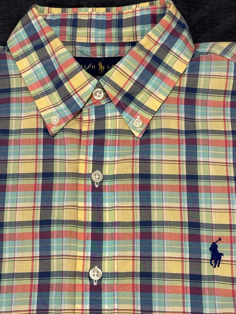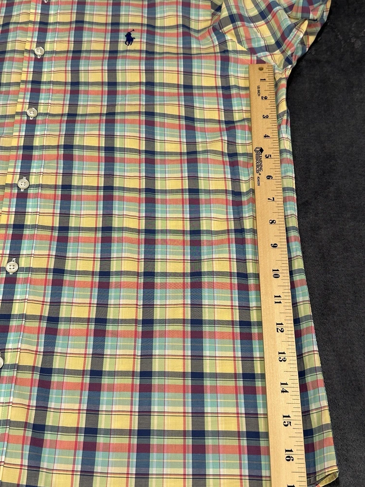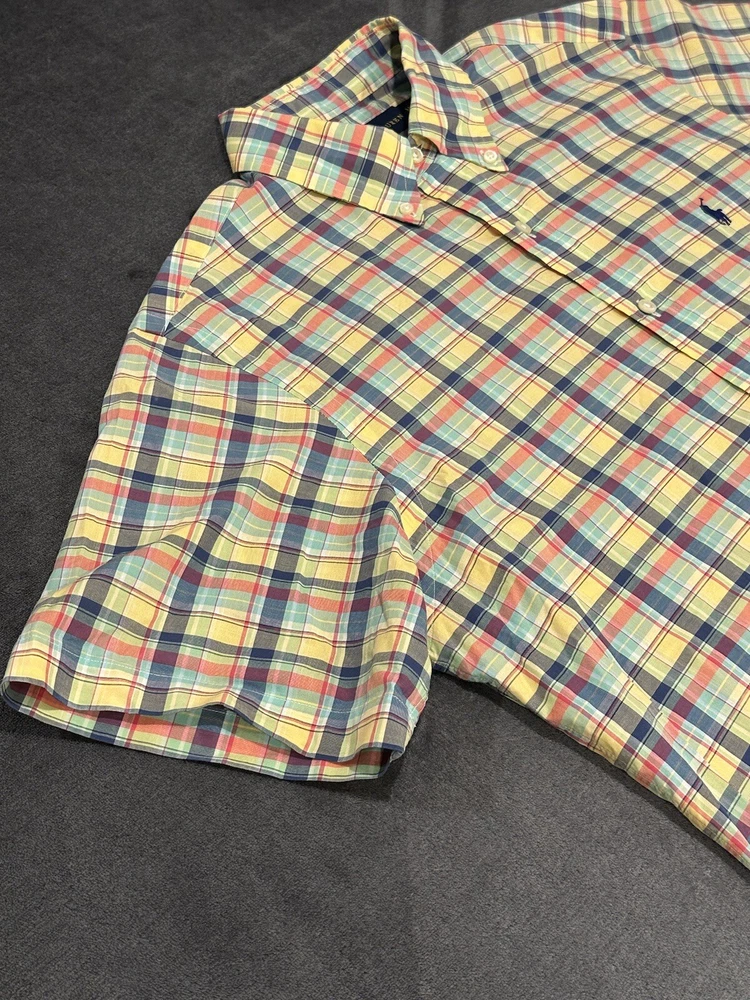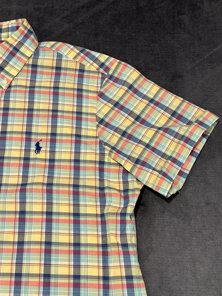 Ralph Lauren Polo Short Sleeve Casual Button Down Shirt. Men's Size M Multicolor Plaid Colors - Yellow/Red/Green/Blue (Blue Polo Logo) 100% Cotton NOTE: Please see all photos for condition as all flaws will be shown throughout the photos! * COLORS MAY BE DARKER OR LIGHTER OR SLIGHTLY DIFFERENT DUE TO MONITOR/PHONE/TABLET SETTINGS. Please refer to the "condition description" for inspection notes. Actual measurements may differ from the tag due to potential shrinkage, stretching, hemming, or manufacturer error. It is common for pre-owned jeans to shrink or stretch based on how they were washed/dried/worn from previous owners. If measurement differs more than 1.5" either way from what the tag says, I will list the items as actual measurements to ensure proper fit. I recommend measuring yourself before ordering online to help find the perfect fit for you. My shipping discount: $3 shipping on each additional item you add to your order!