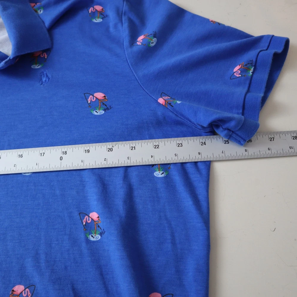 Polo Ralph Lauren Shirt Mens XL Blue Polo Flamingo Fishing Preppy Tropical Beach Sizing in the title and item specifics are based on what the tag says. Measurements can be seen in the photos.