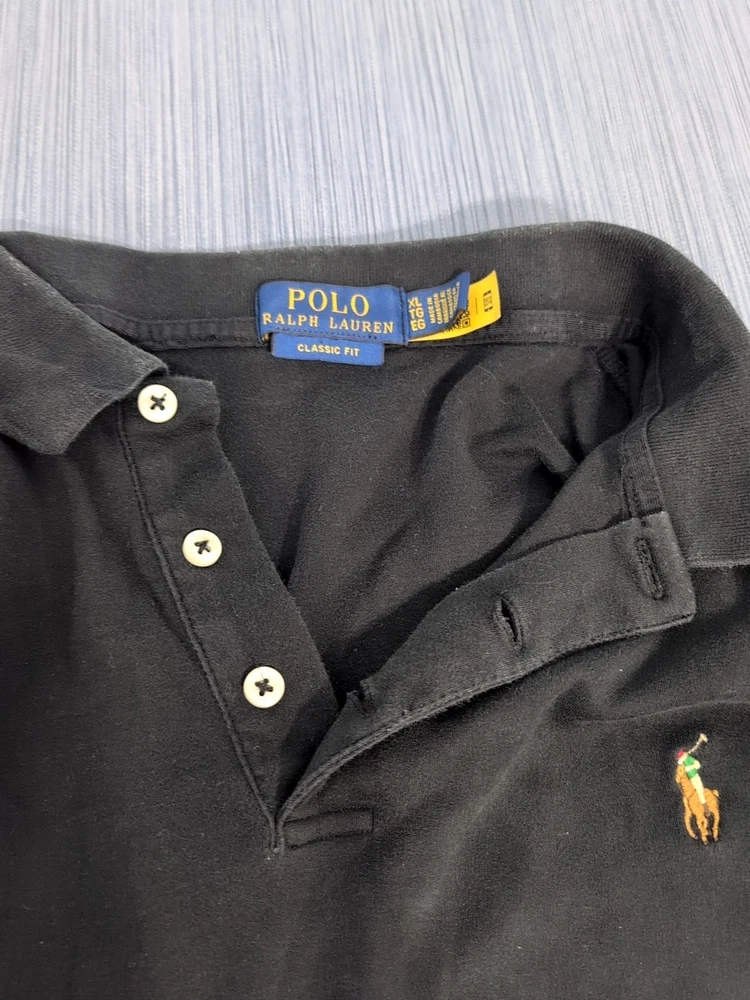 This man's large polo shirt by Ralph Lauren is a size extra large. It's in good condition there are no stains but the collar needs to be ironed. I don't have an iron or I would iron it for you.