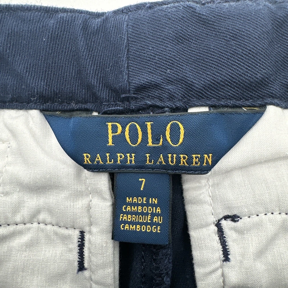Pattern: Solid Occasion: Casual Character: Blue Features: Pockets Color: Blue Fit: Classic Fabric Wash: Medium Theme: Logo, Designer Performance/Activity: School, Beach Department: Girls Brand: Polo Ralph Lauren Style: Chino Closure: Zipper & Button Country/Region of Manufacture: Cambodia Size: 7 Material: 100% Cotton