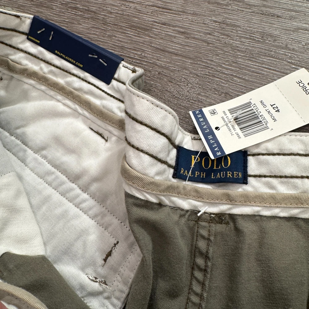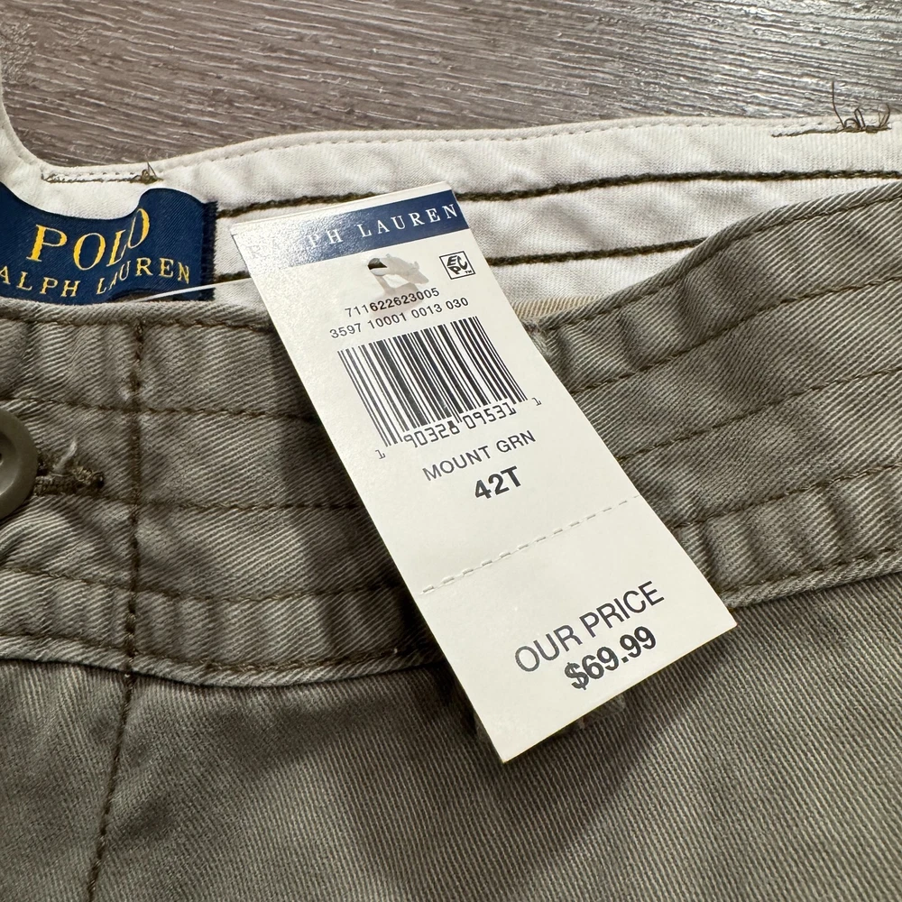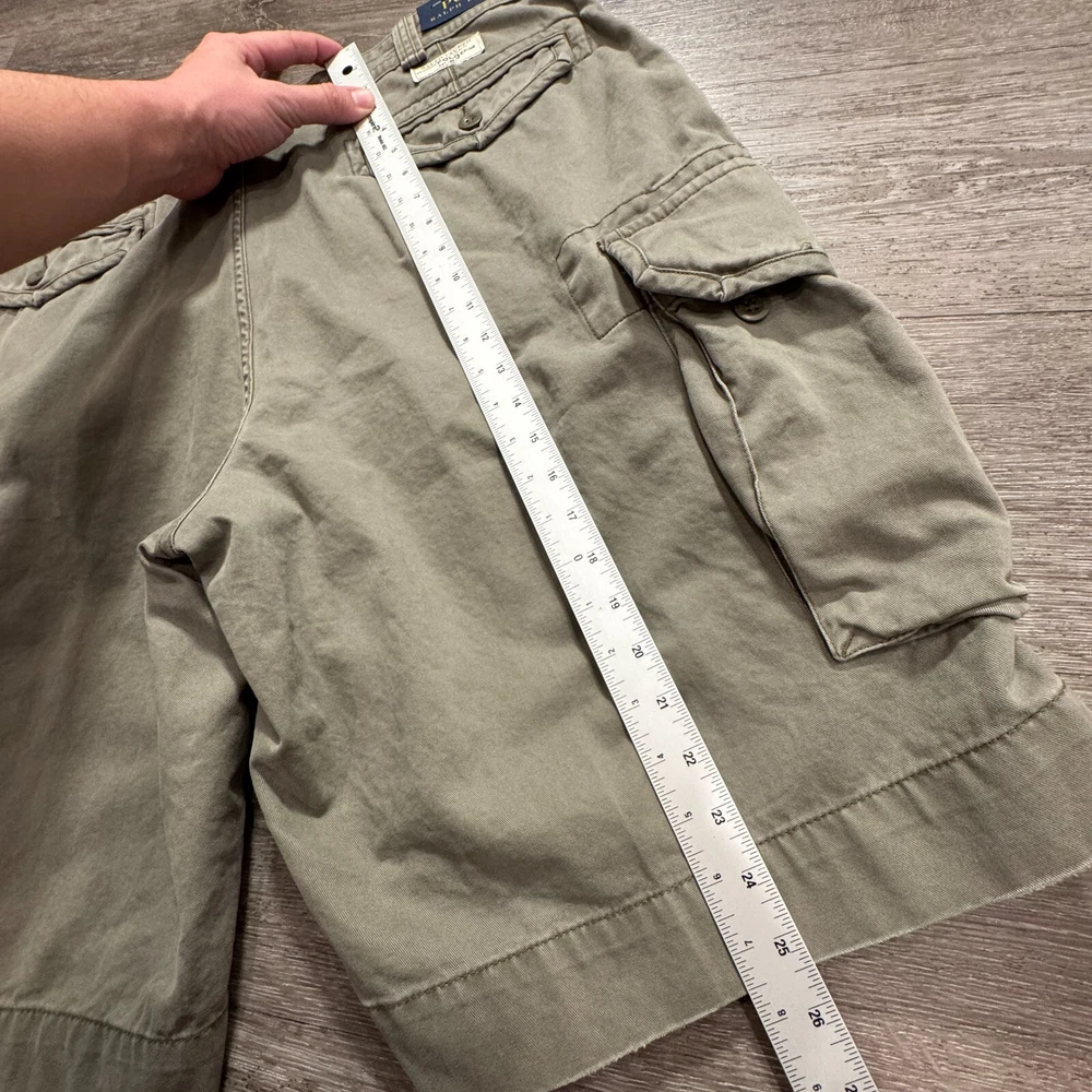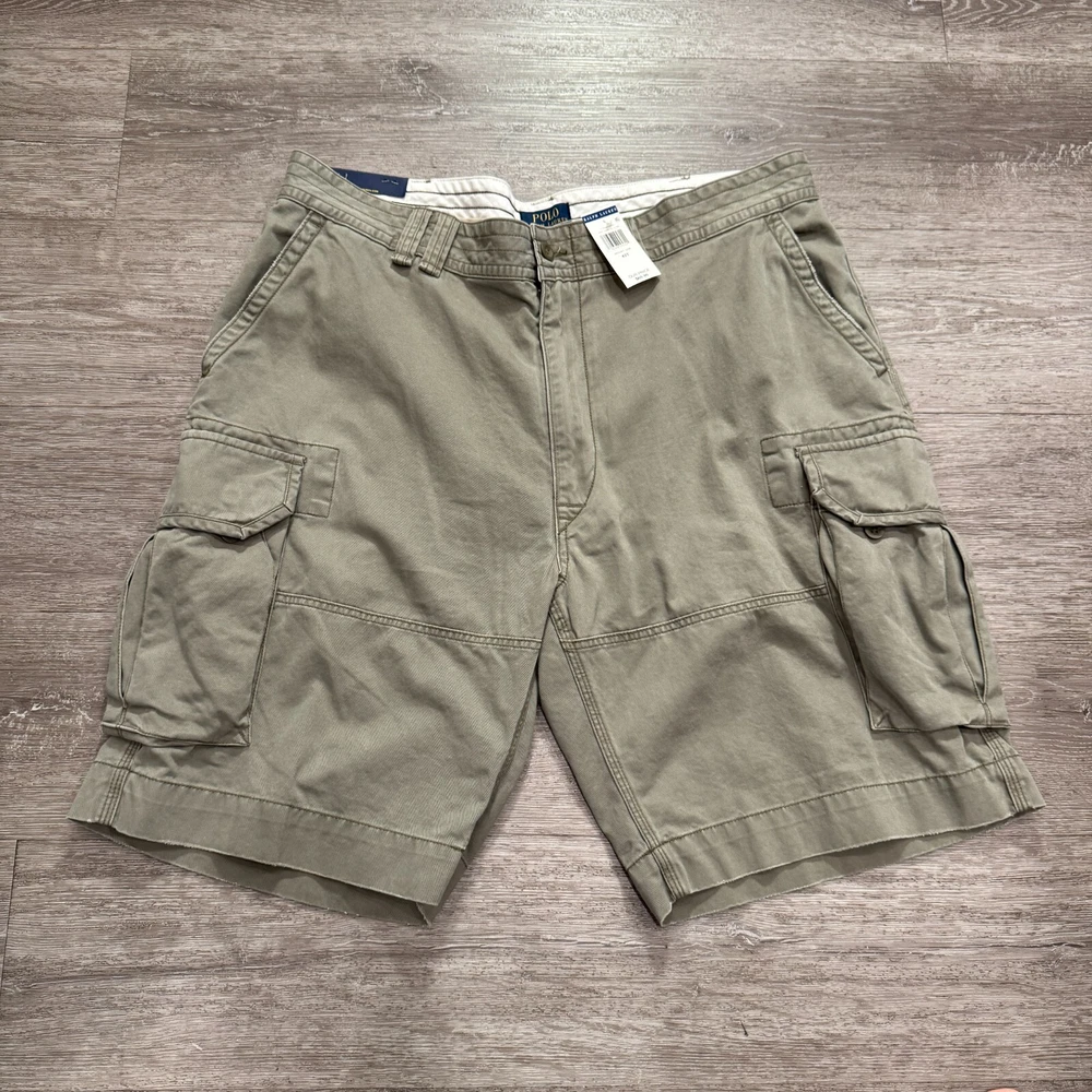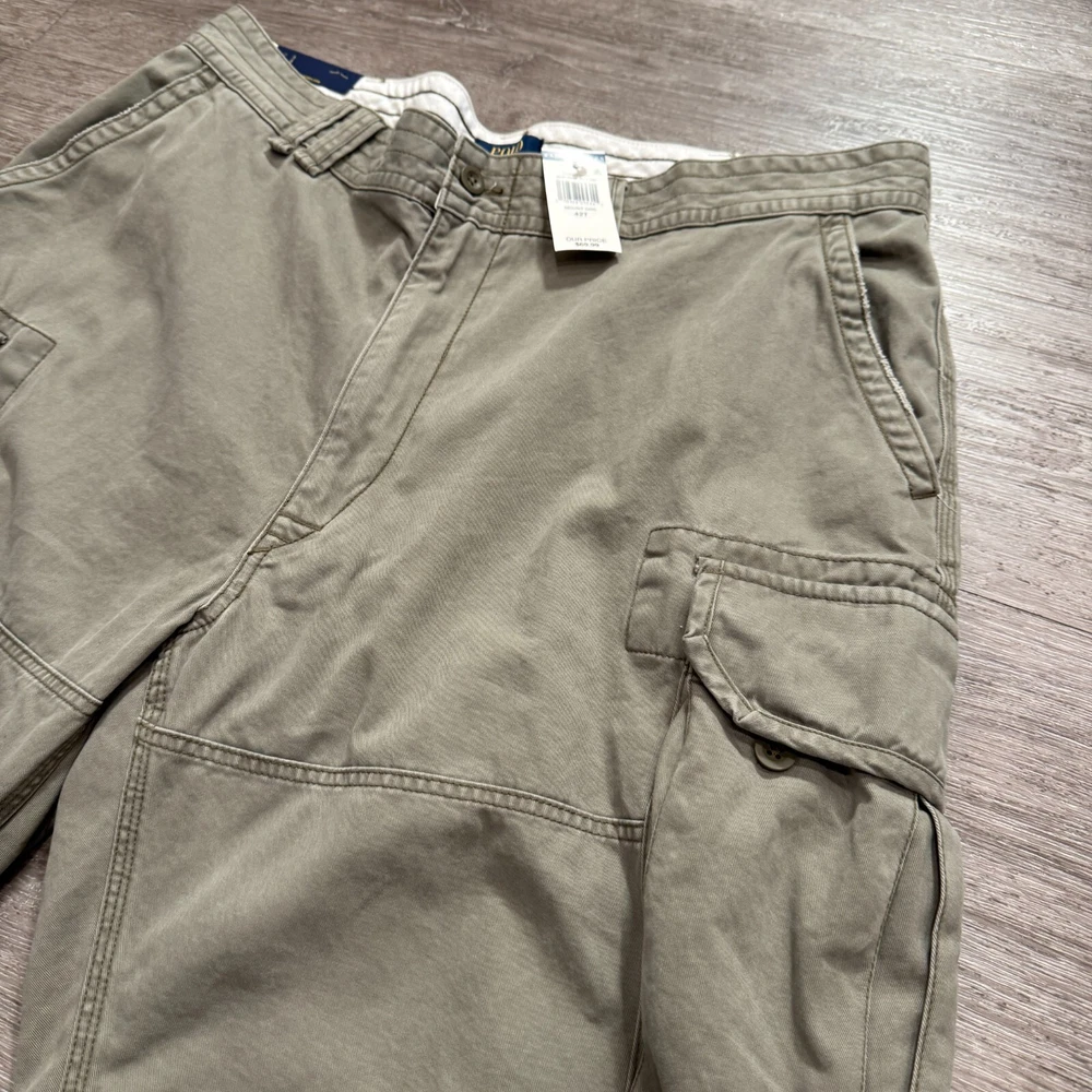 Color: Gray Style: Cargo Material: Cotton Department: Men Size Type: Regular Personalize: No Features: Easy Care, Lightweight, Pockets Pattern: Solid Occasion: Casual, Travel Vintage: No Waist Size: 42 in Fabric Wash: Medium Season: Fall, Spring, Summer Inseam: 12 in Handmade: No Accents: Logo Theme: Outdoor Size: 42 Garment Care: Machine Washable Brand: Polo Ralph Lauren Pocket Type: Cargo Pocket Fabric Type: Knit Front Type: Pleated Rise: Mid (10-12 in) Fit: Regular Closure: Button