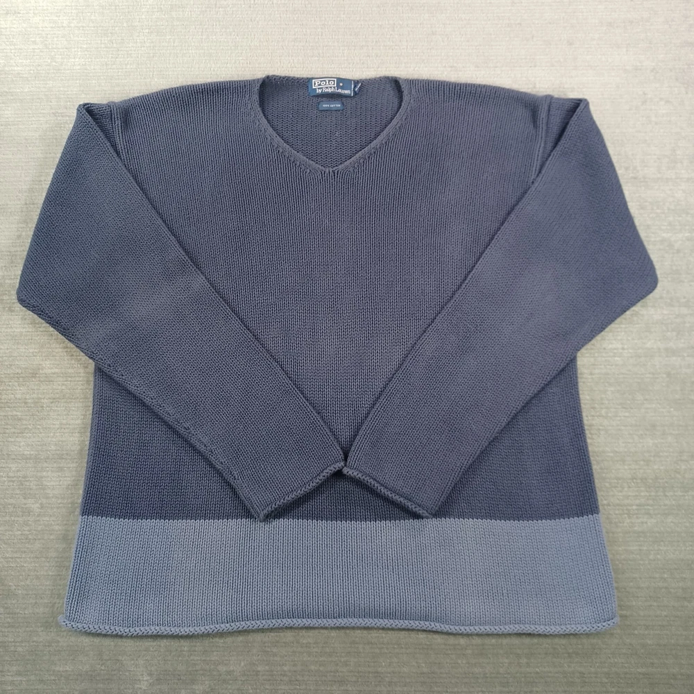 Polo Ralph Lauren Sweater Mens L Blue Knit Color Block Stretch Casual Midweight