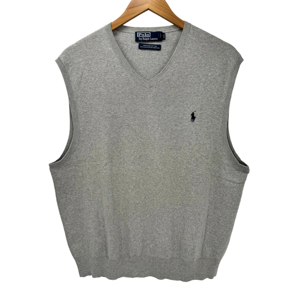 Polo Ralph Lauren Sweater Mens XL Gray V-Neck Pima Cotton Vest Pullover Knit Very good condition, see all pictures for views. •Pit to pit: 22" •Shoulder to hem: 26" Ships out same day or next open postal day. Thank you for your purchase, we appreciate you!