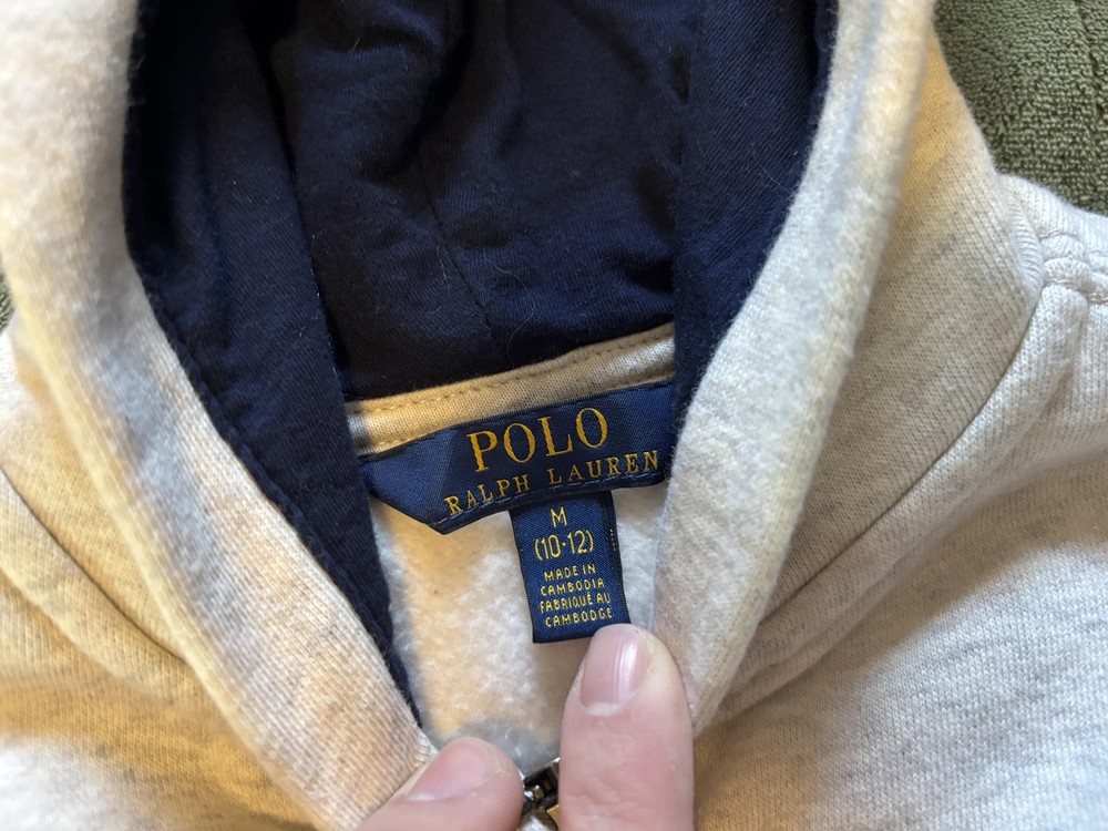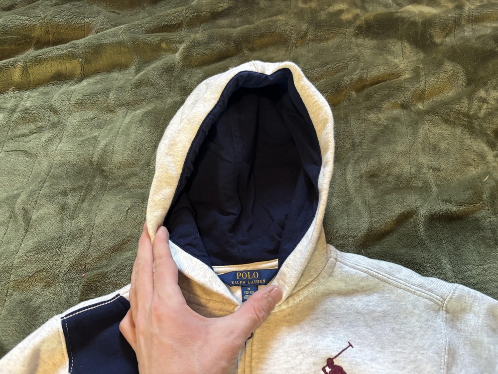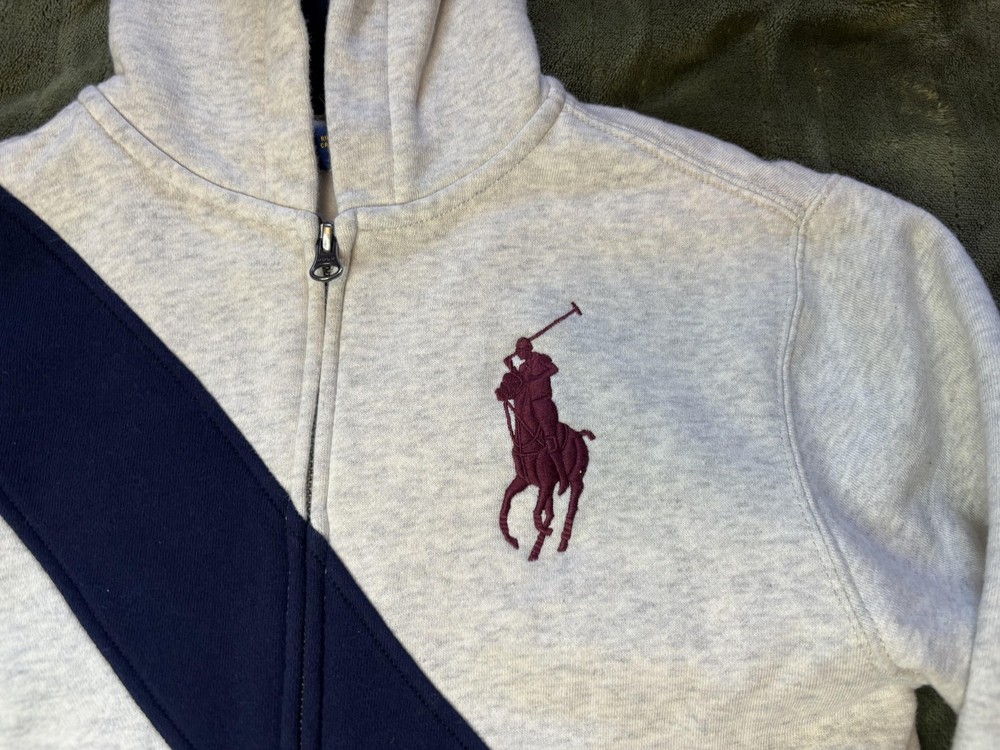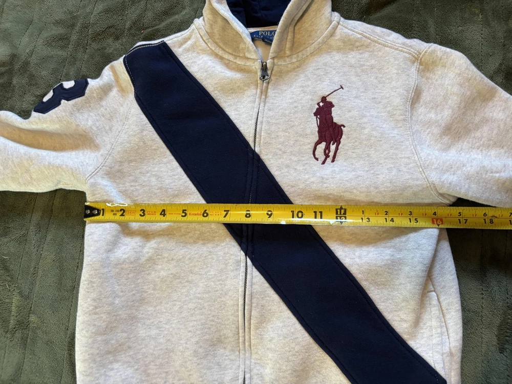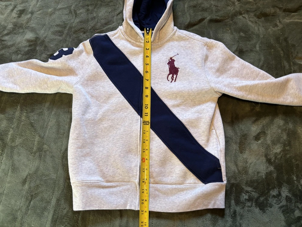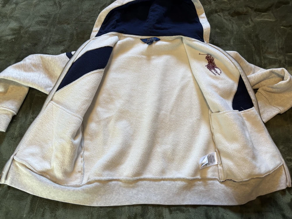 Color: Gray Size: 10-12 Material: Cotton, Polyester Brand: Polo Ralph Lauren Style: Full Zip Features: Full Zip, Hooded, Pockets Department: Boys Vintage: No Pattern: Colorblock Country of Origin: Cambodia Closure: Zip Type: Hoodie Fabric Type: Fleece