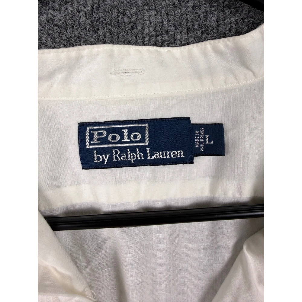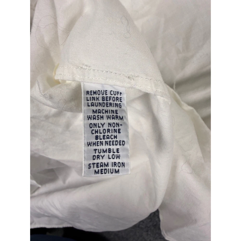 Polo Ralph Lauren tuxedo shirt crafted from crisp 100% cotton in a classic white. This long-sleeve top features a sophisticated band collar and a pleated bib front, offering a refined take on traditional formalwear. The shirt is designed with a partial button placket (popover style) and French cuffs, requiring cuff links for a polished finish. A curved hem and box pleat at the back ensure a comfortable, tailored fit suitable for formal occasions or elevated casual styling. Measurements: • Pit-to-pit: 25" (50" chest) • Length: 31" • Sleeve length: 34" Thank you for looking! I sure appreciate it and strive to make every listing accurate and include any flaws I find. Please note, look at all the pictures for condition and also for color, sometimes the lighting makes some pics look different that others. Have a great day!