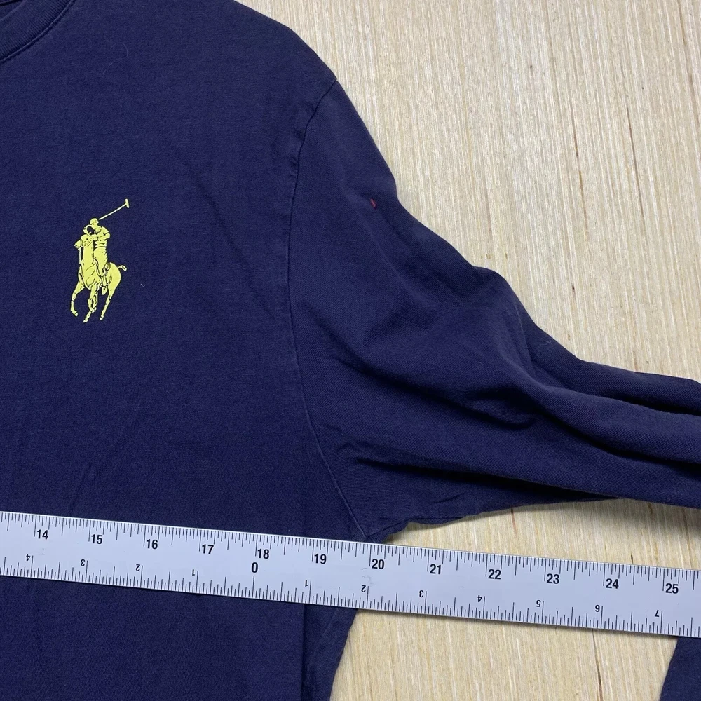Polo Shirt Adult Extra Large Blue Long Sleeve Men's Pullover Big Pony